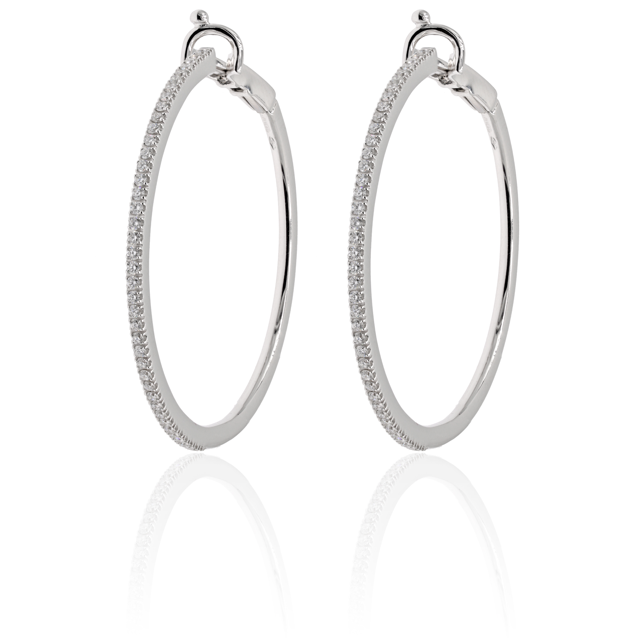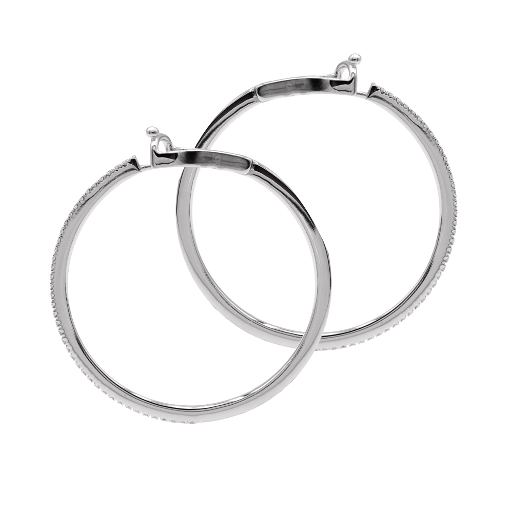 Orecchini a cerchio tondi in oro bianco con 80 diamanti taglio brillante (ct 0,64 - F - SI) - diametro 4 cm