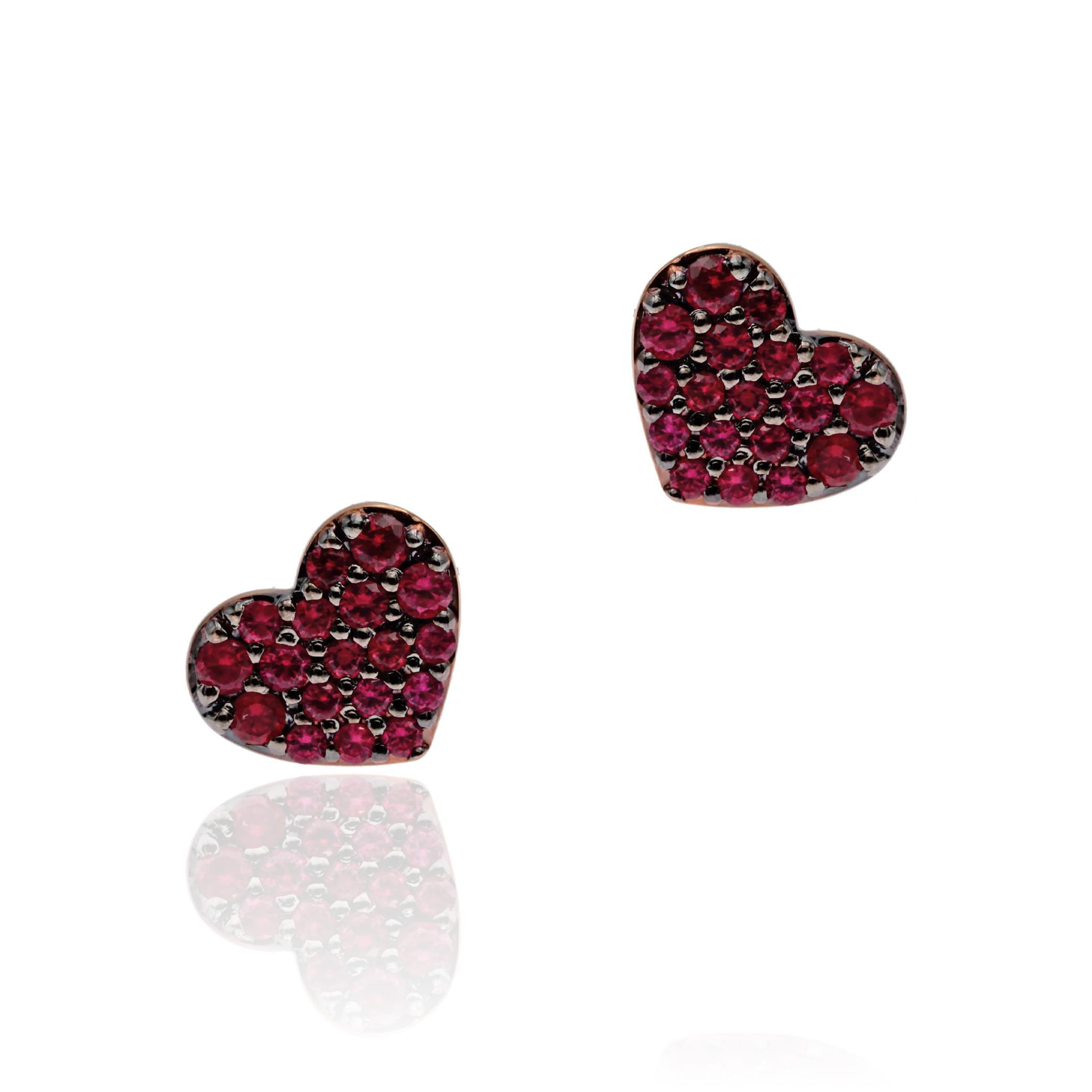 Orecchini a cuore in oro rosa con rubini (ct 0,17) - 5x6 mm