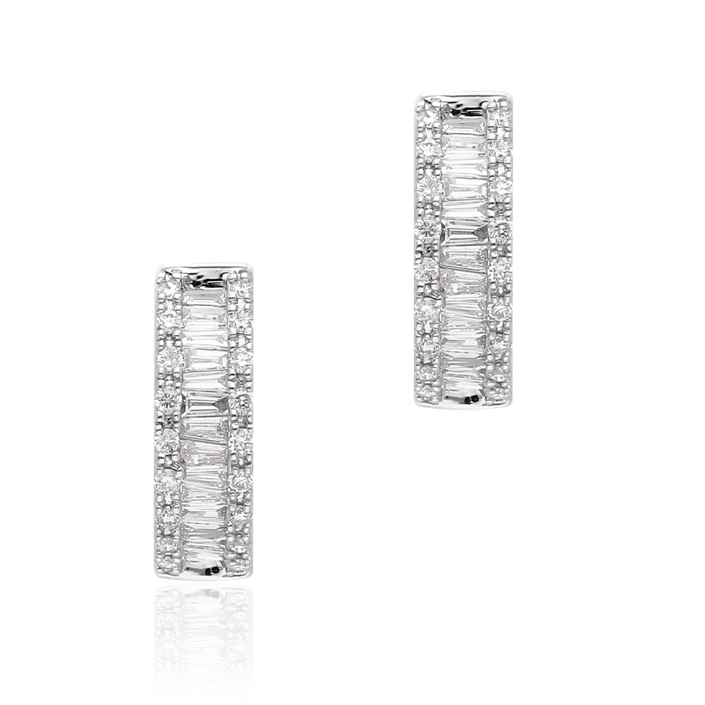 Orecchini ad anella fantasia in oro bianco 18K con diamanti taglio brillante e taglio baguette (1,00 ct - G/H - SI) - diametro 1,35 cm