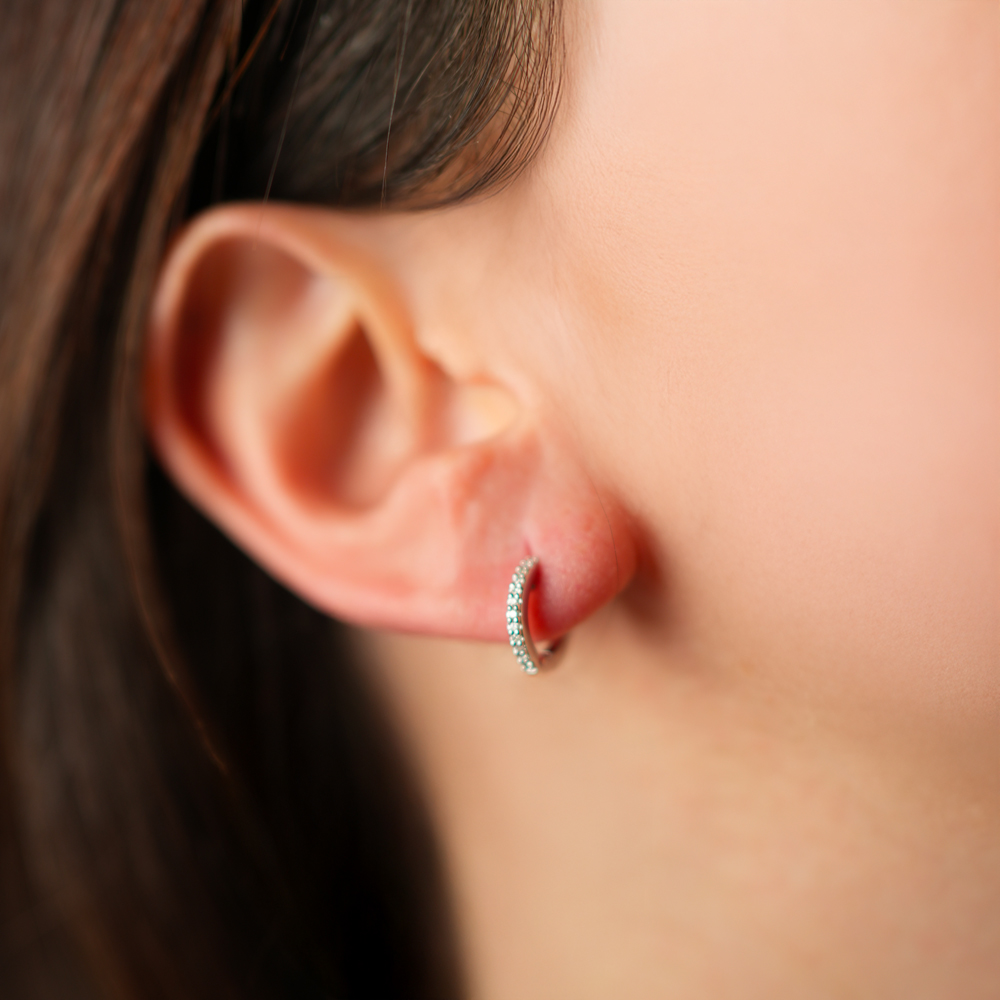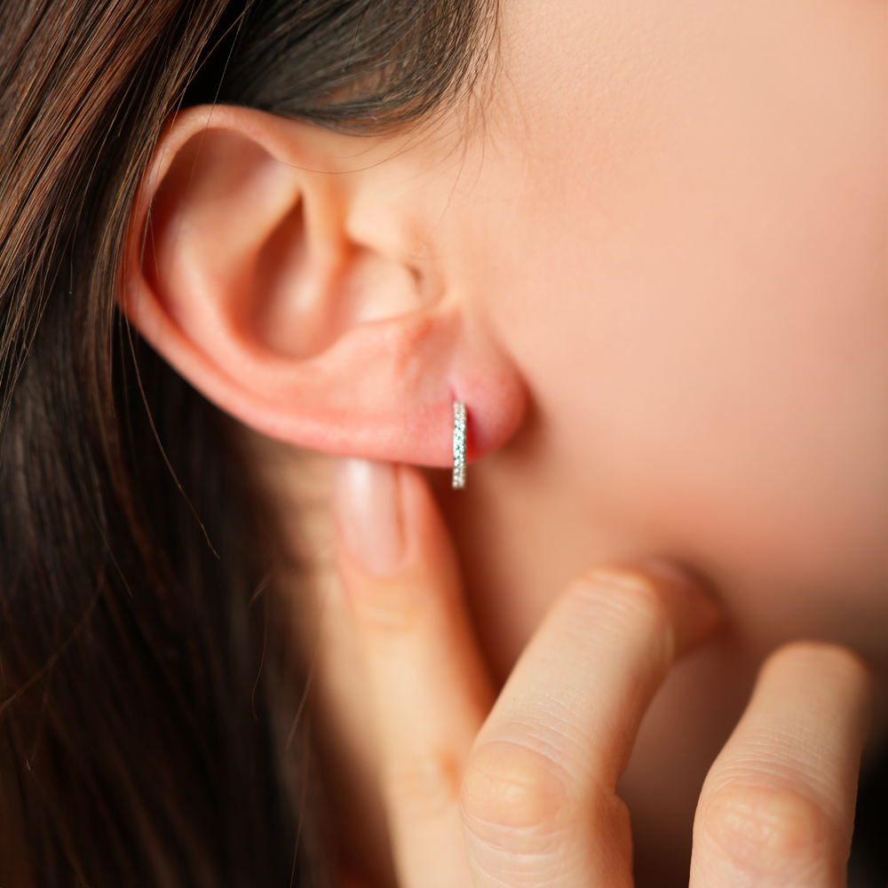 Orecchini ad anella in oro bianco 18K con diamanti taglio brillante (ct 0,10 - G/H -SI)