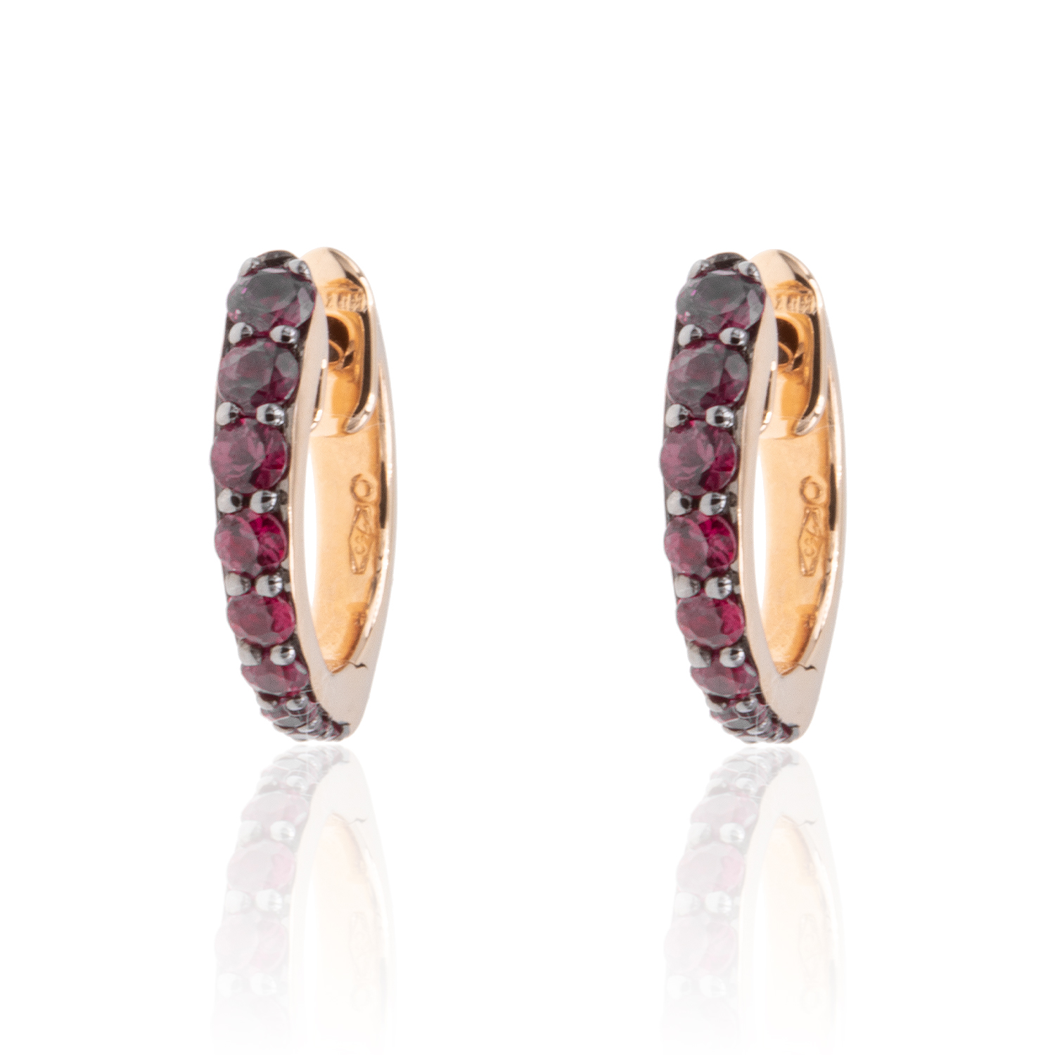 Orecchini ad anella in oro rosa 18 ct con rubini (0,45 ct)