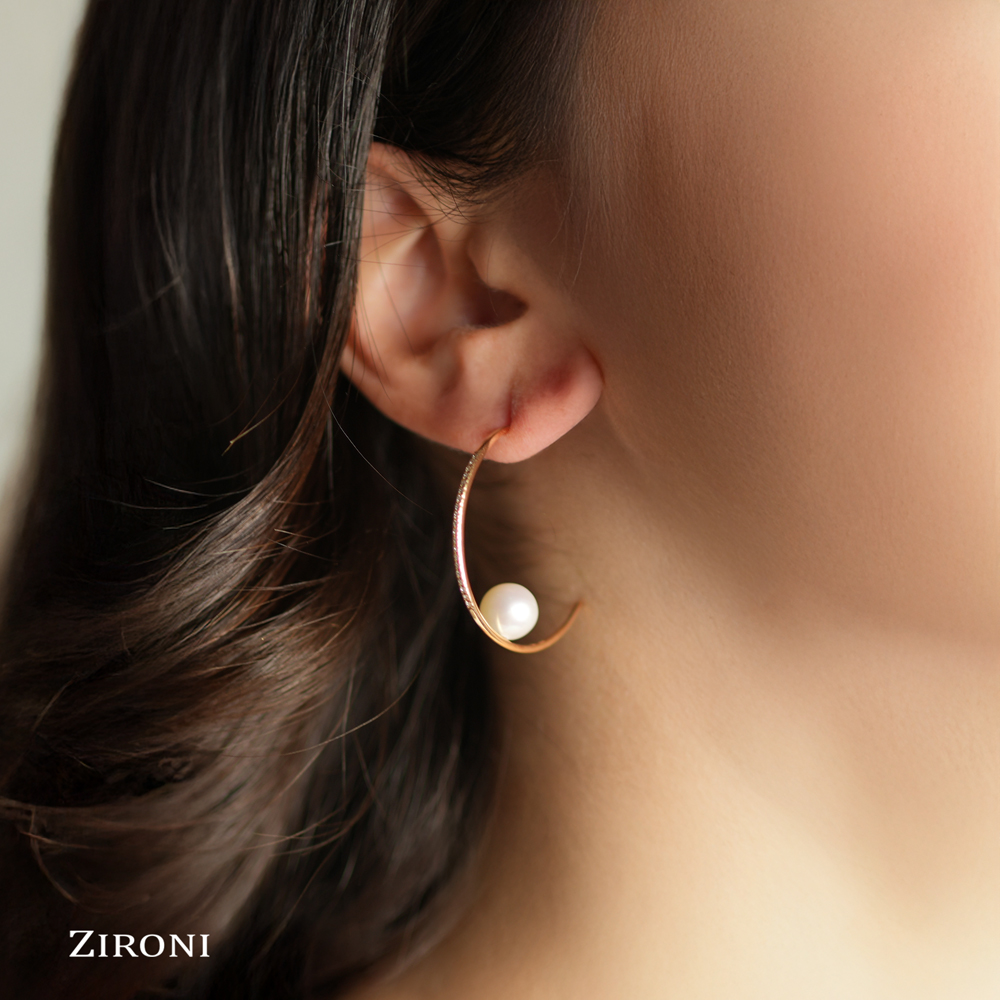 Orecchini ad anella in oro rosa con perle (8/8.5 mm) e diamanti (ct 0.13)