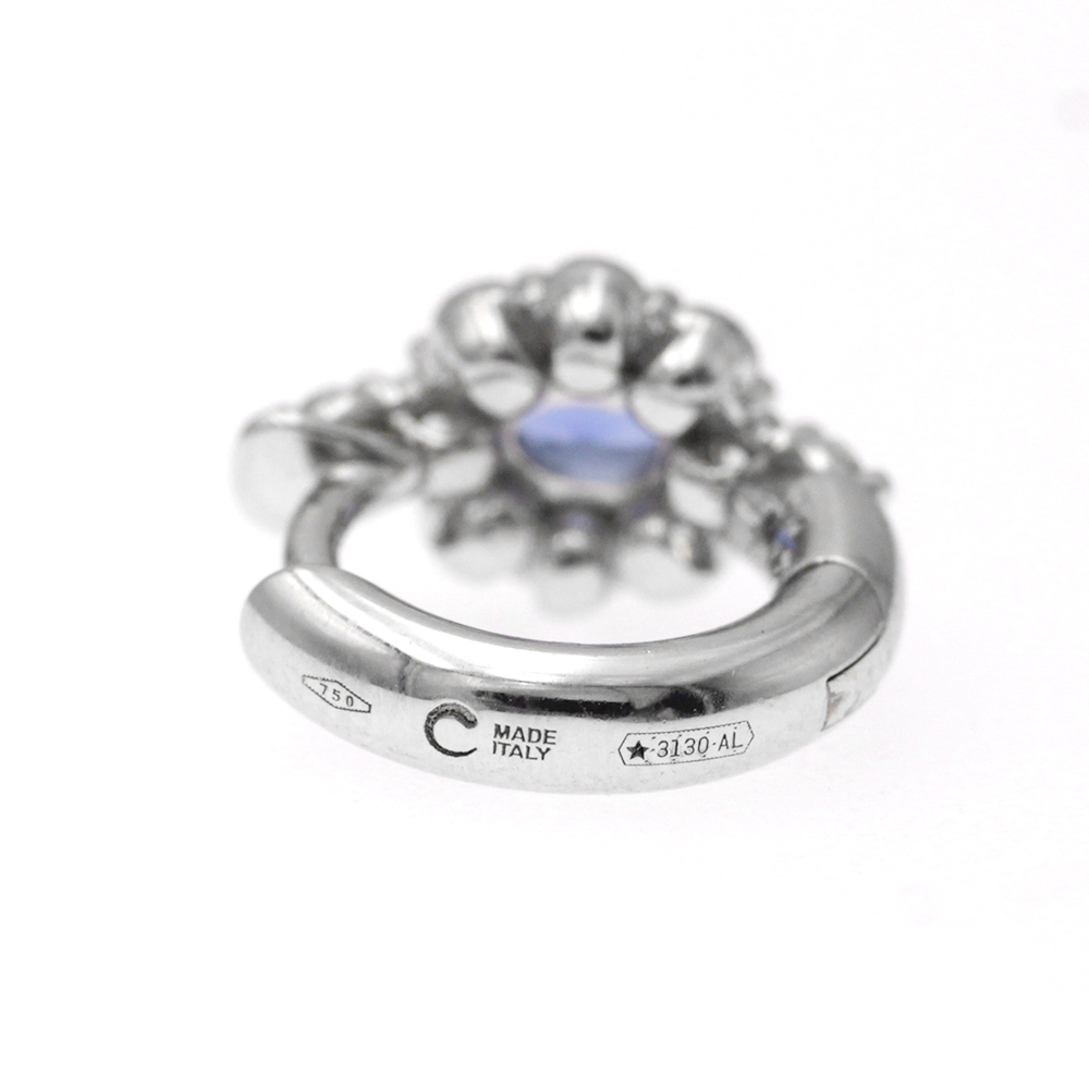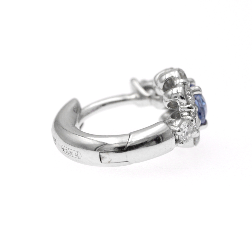 Orecchini ad anellina con 2 zaffiri (dimensione 4x3) taglio ovale (0,46 ct) e contorno di 20 diamanti taglio brillante (0,50 ct - F -VS)