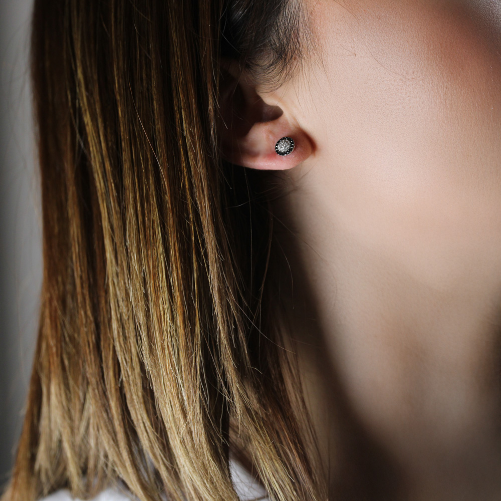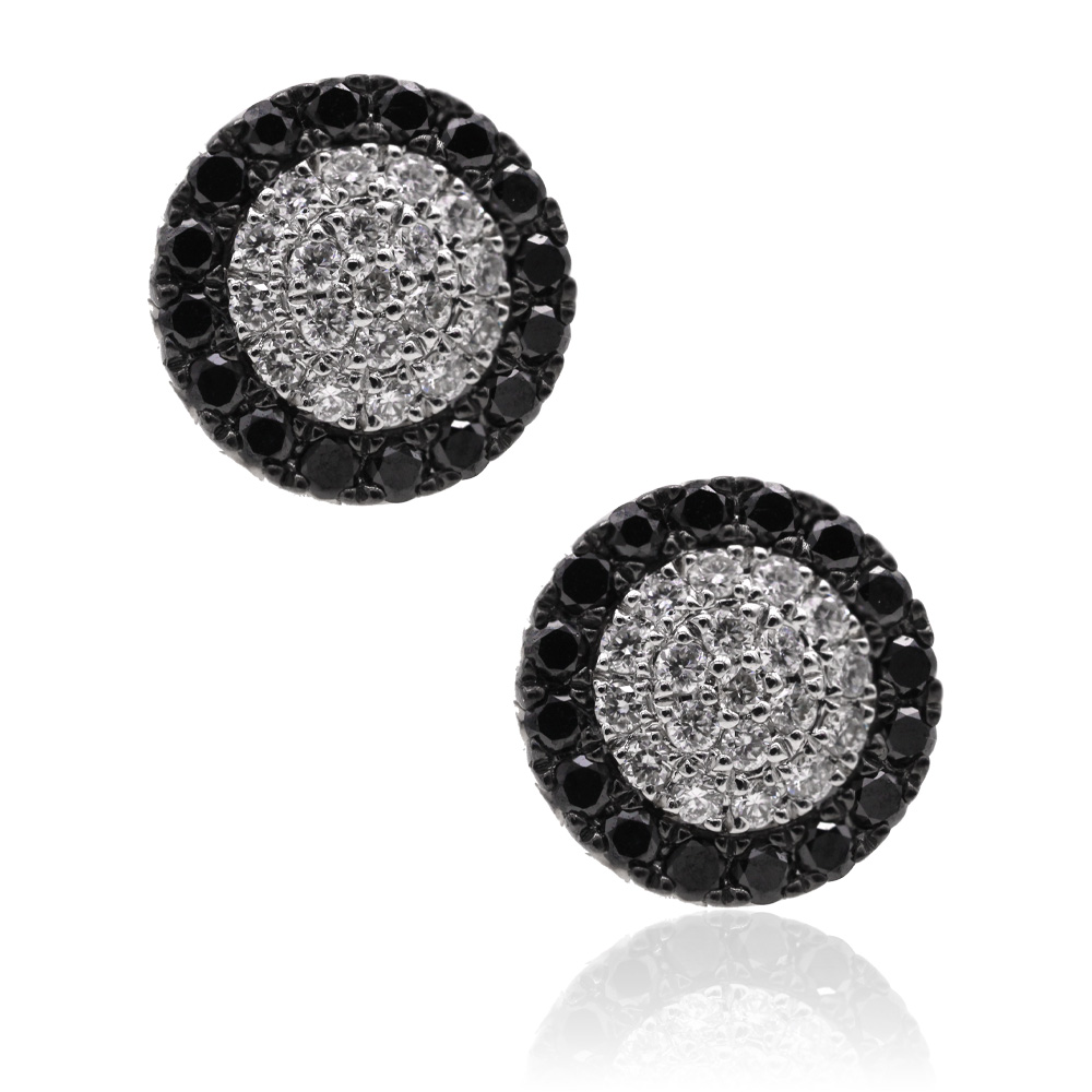 Orecchini dischetto in oro bianco con diamanti taglio brillante (ct 0.14) e diamanti neri taglio brillante (ct 0.24)