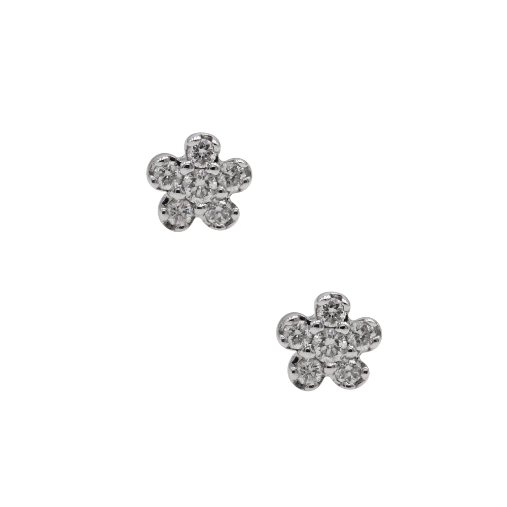 Orecchini fiorellino in oro bianco con diamanti (ct 0,07) - 3,5 mm