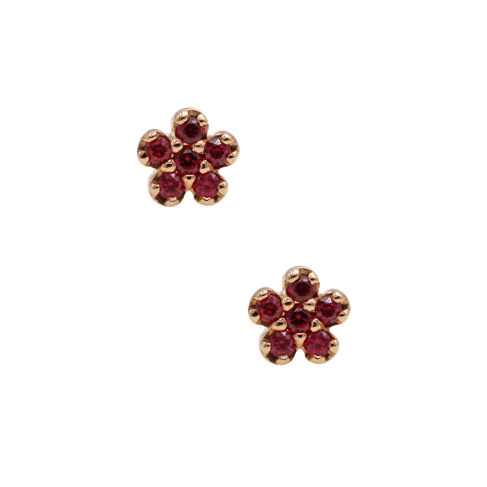 Orecchini fiorellino in oro rosa con rubini (ct 0,08) - 3,5 mm