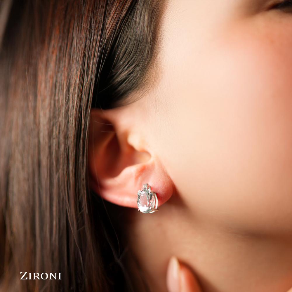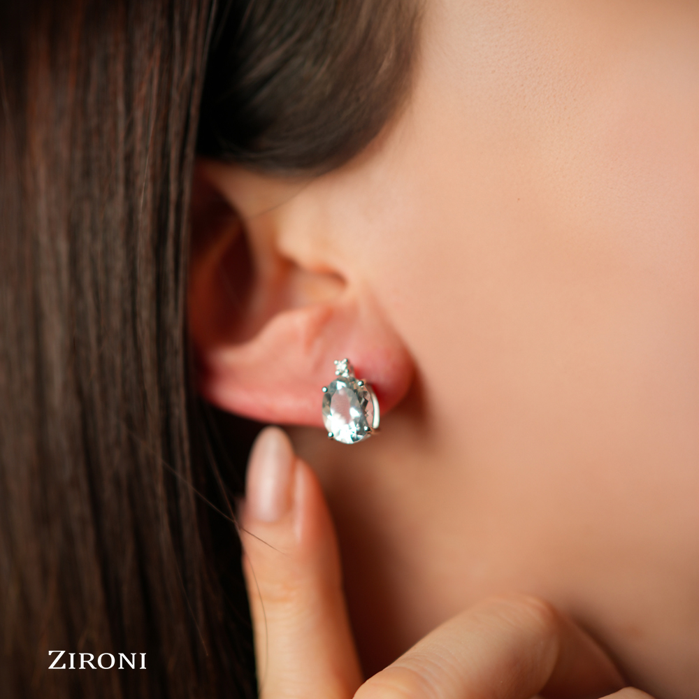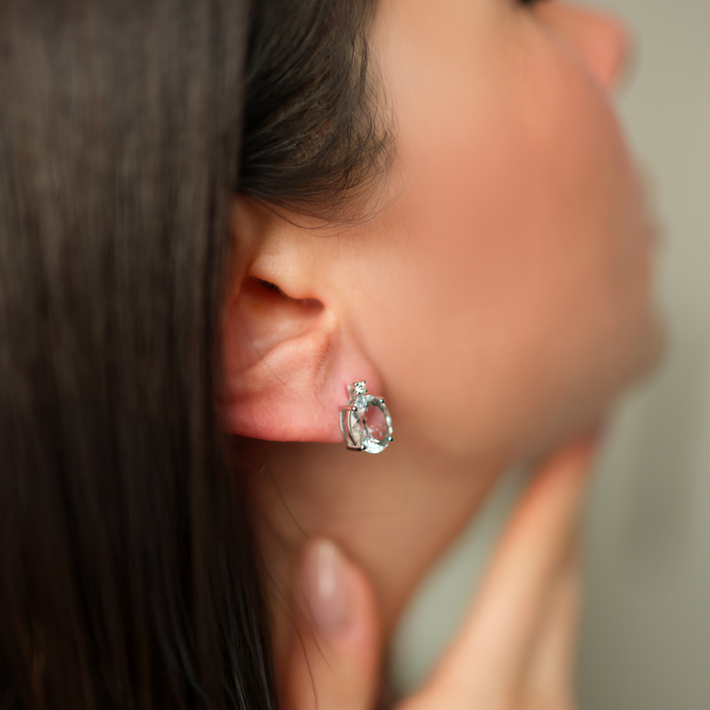 Orecchini in oro bianco 18K con acquamarina taglio ovale (4,34 ct) e 2 diamanti taglio brillante (0,04 ct - G/H - SI)