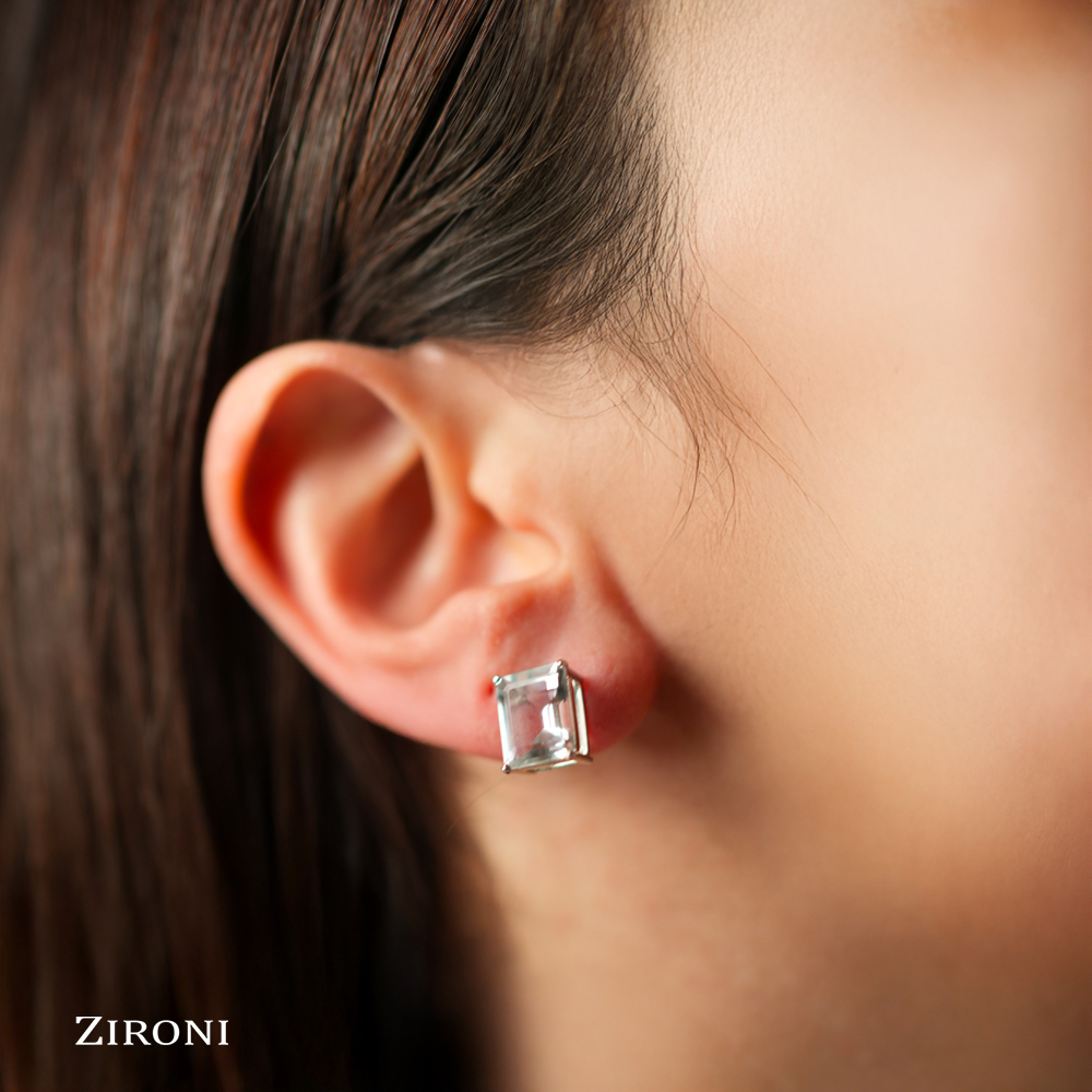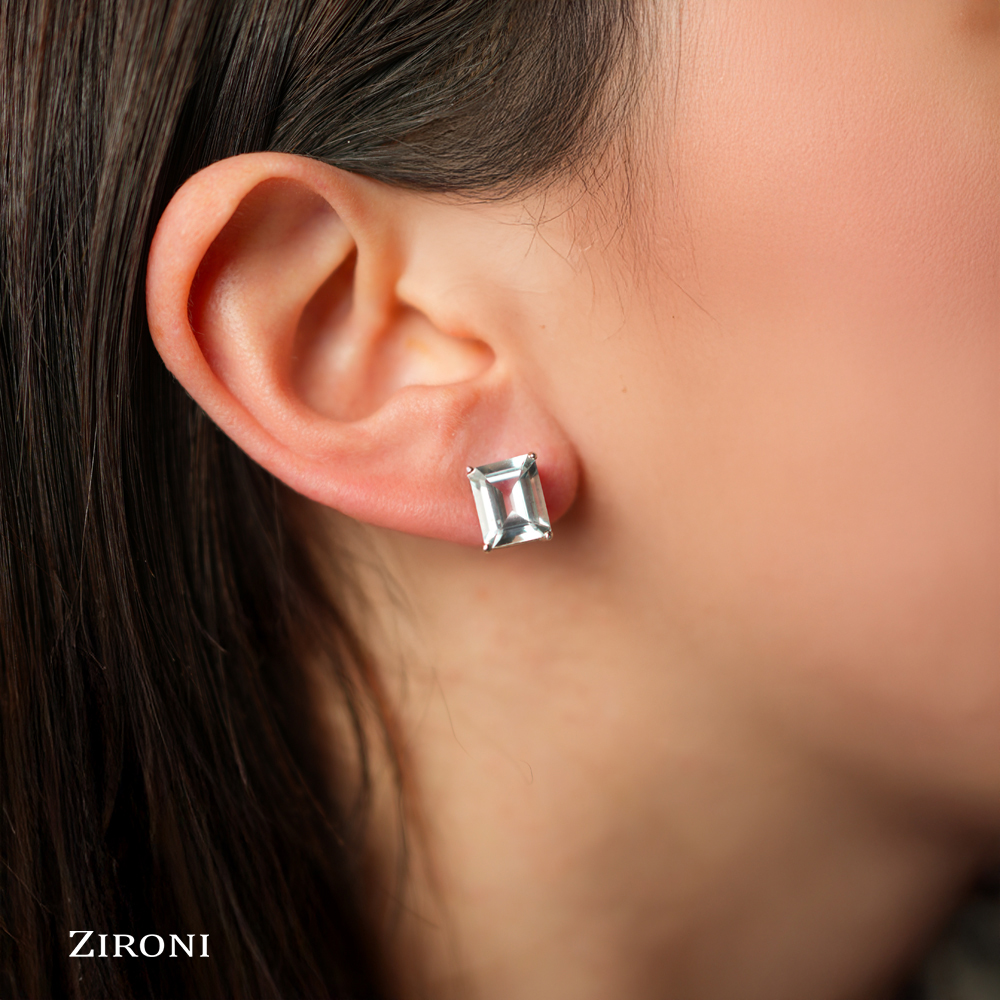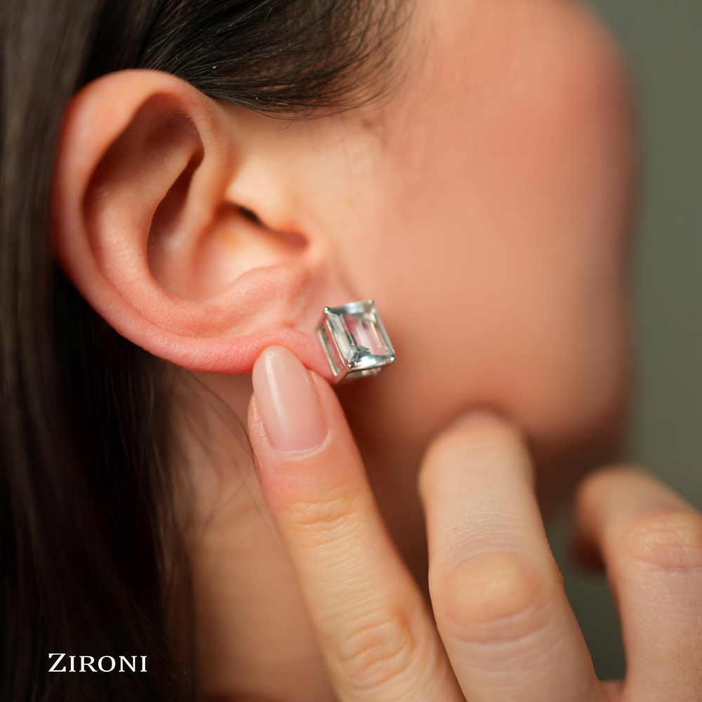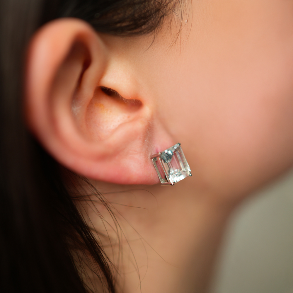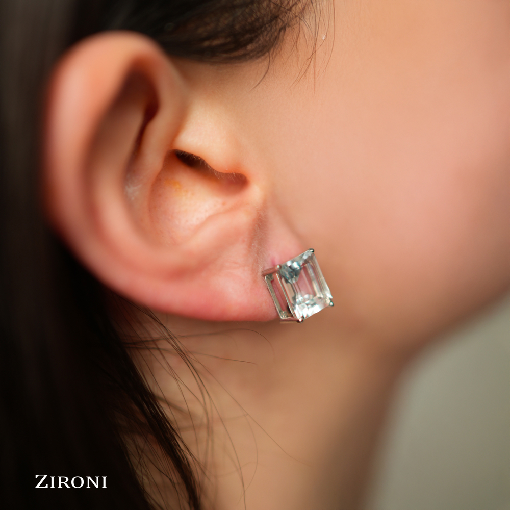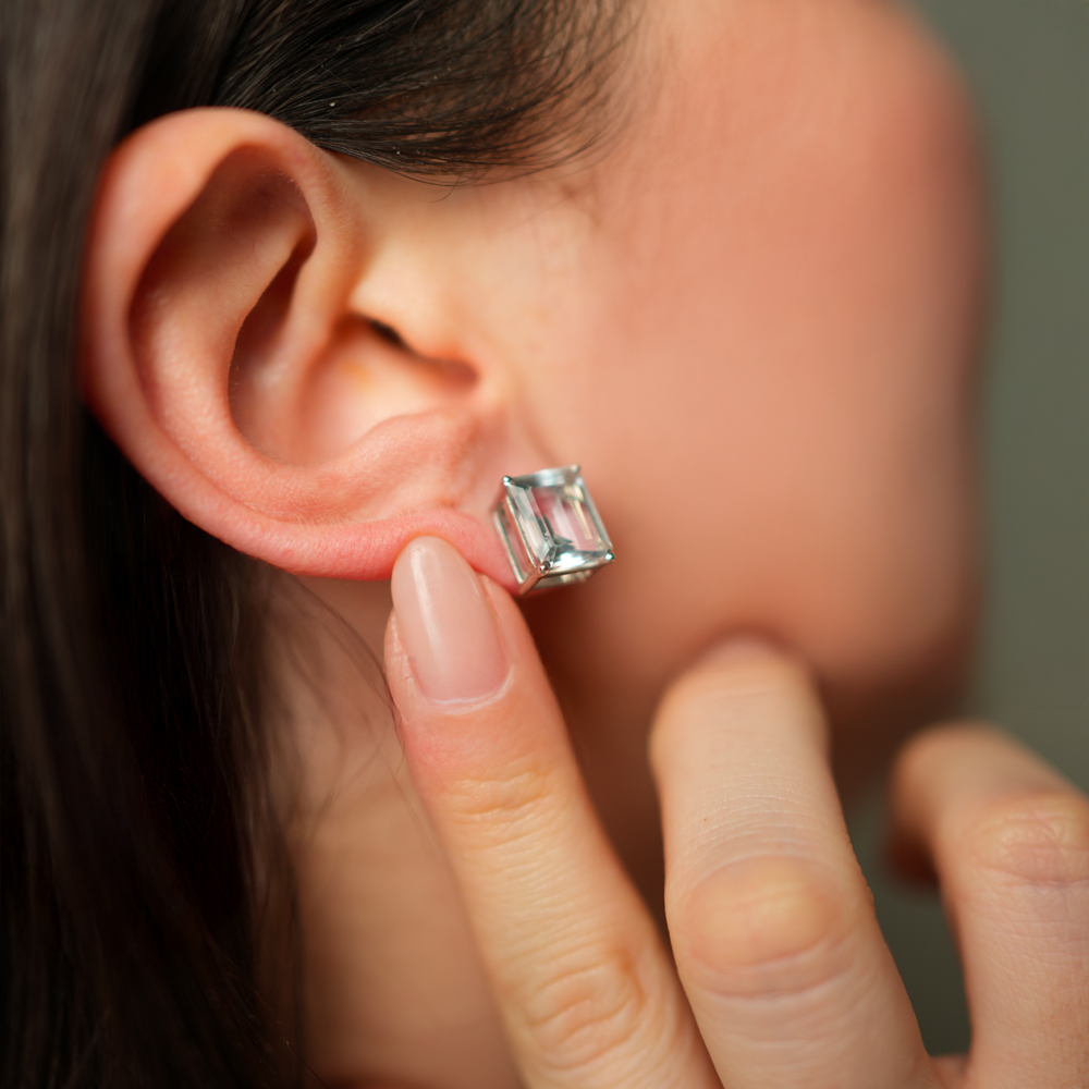 Orecchini in oro bianco 18K con acquamarina taglio smeraldo (5,90 ct)