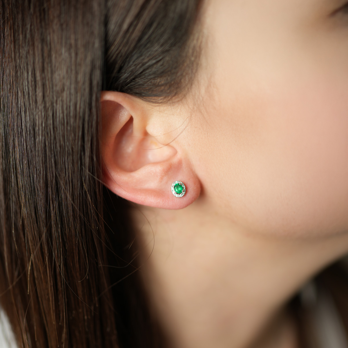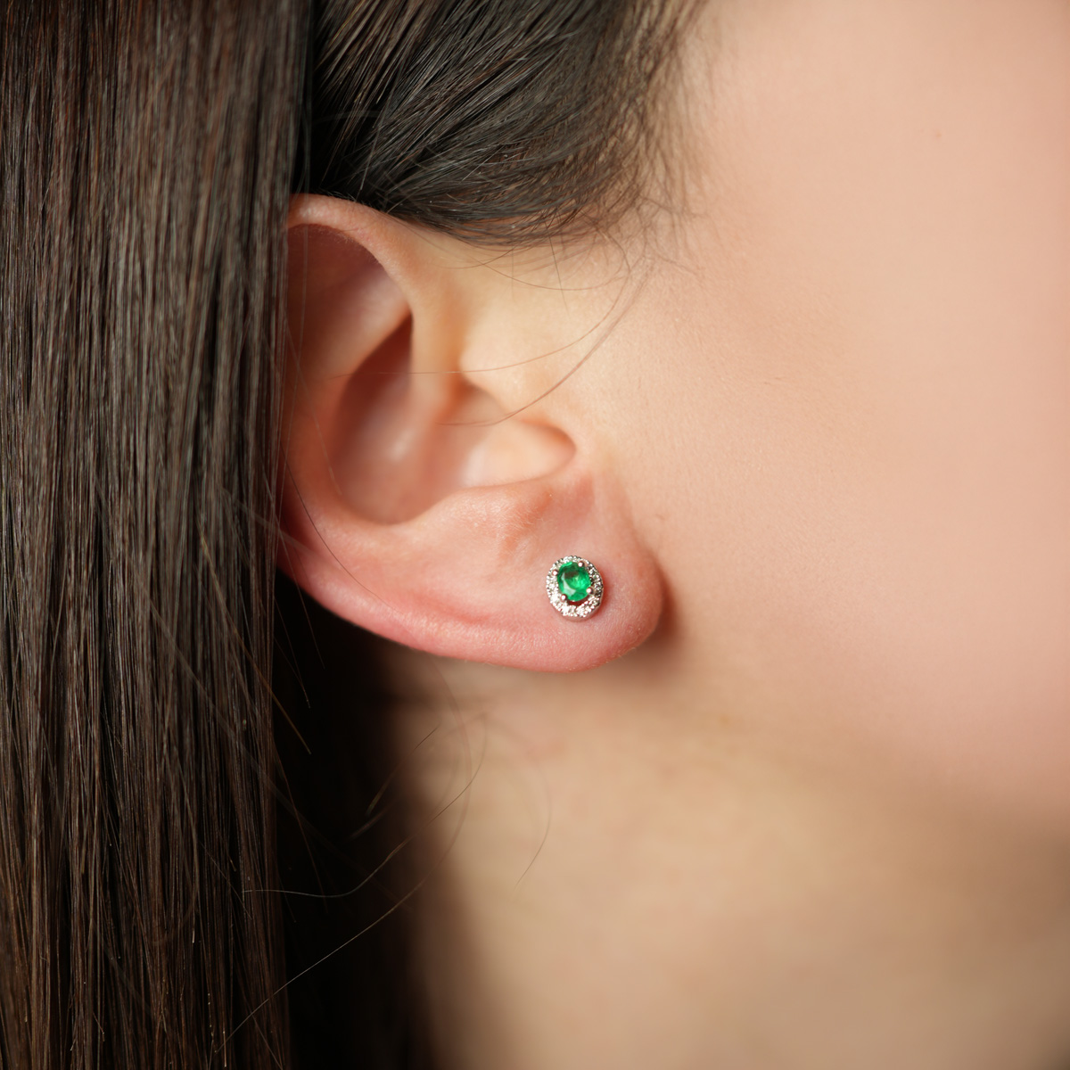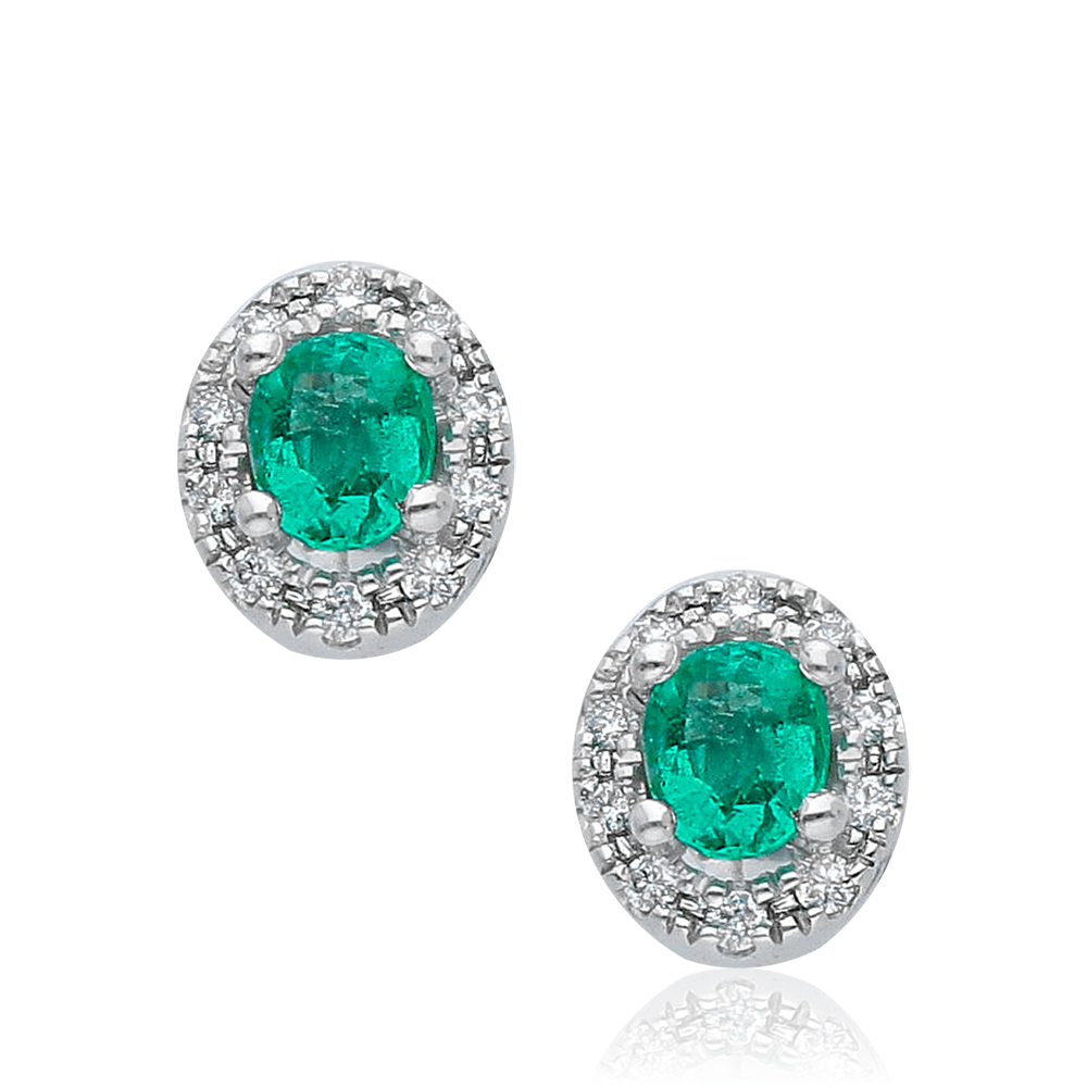Orecchini in oro bianco 18K con diamanti taglio brillante (ct 0.08 - G - SI) e smeraldo centrale taglio ovale (ct 0.29)