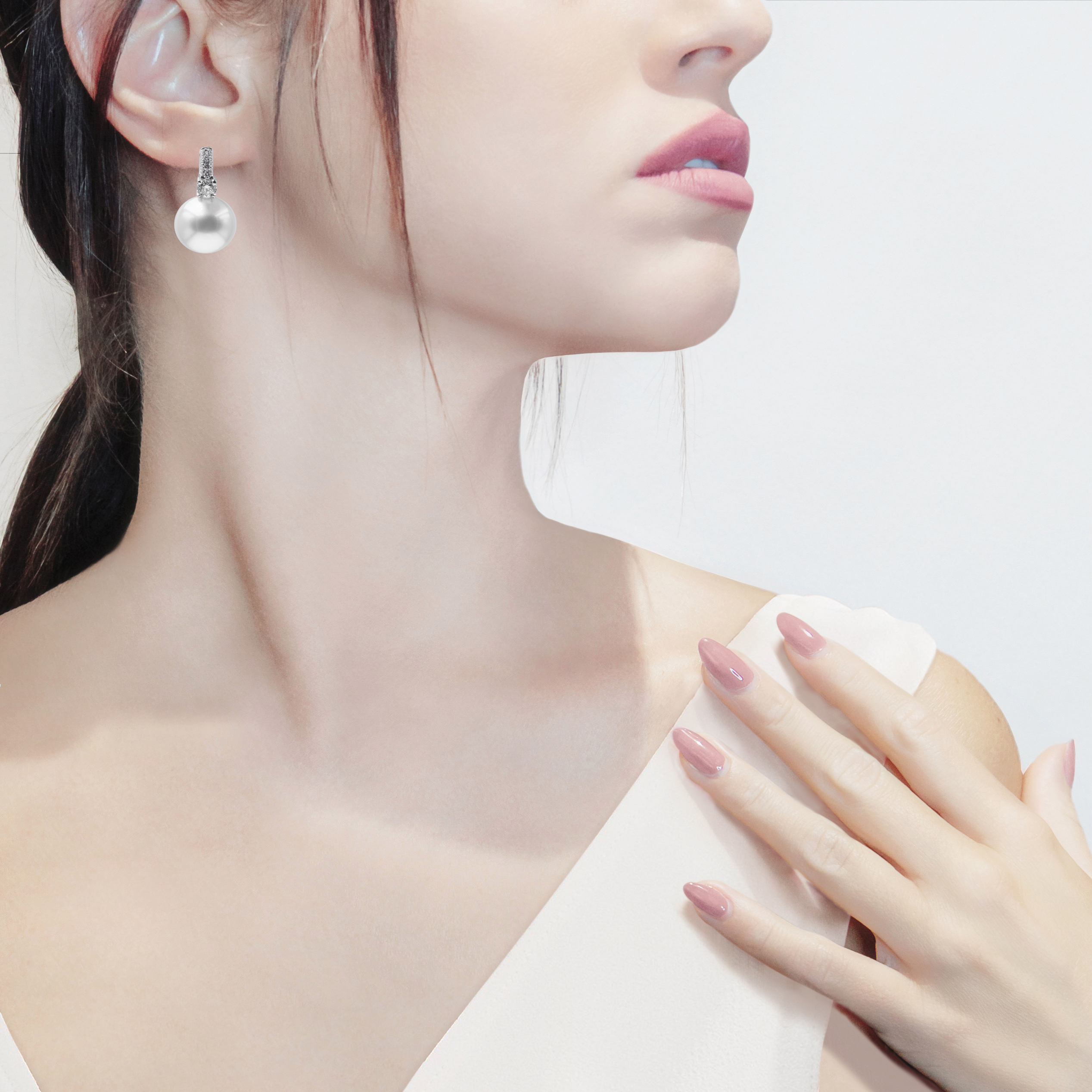 Orecchini in oro bianco con perle australiane e diamanti (0,40 + 0,10 ct)