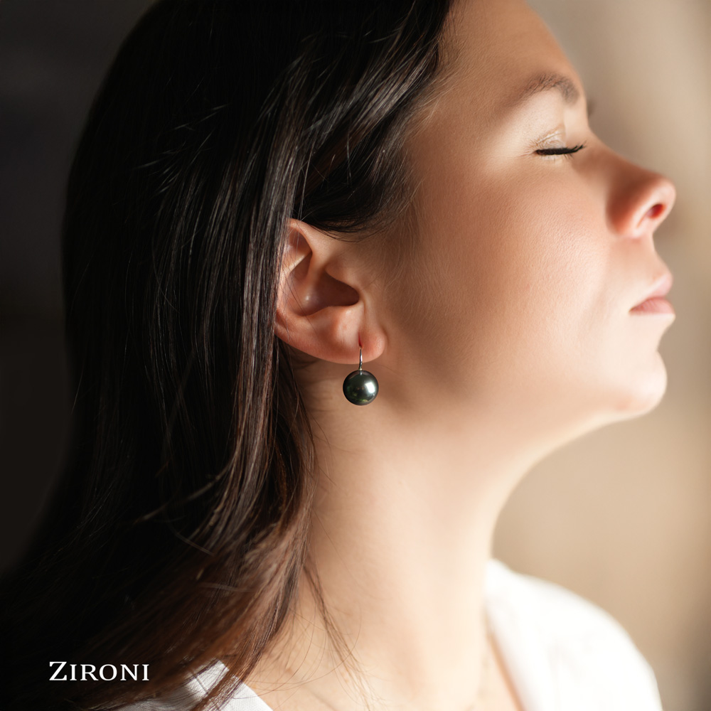 Orecchini in oro bianco 18K con perle verdi (12 mm)