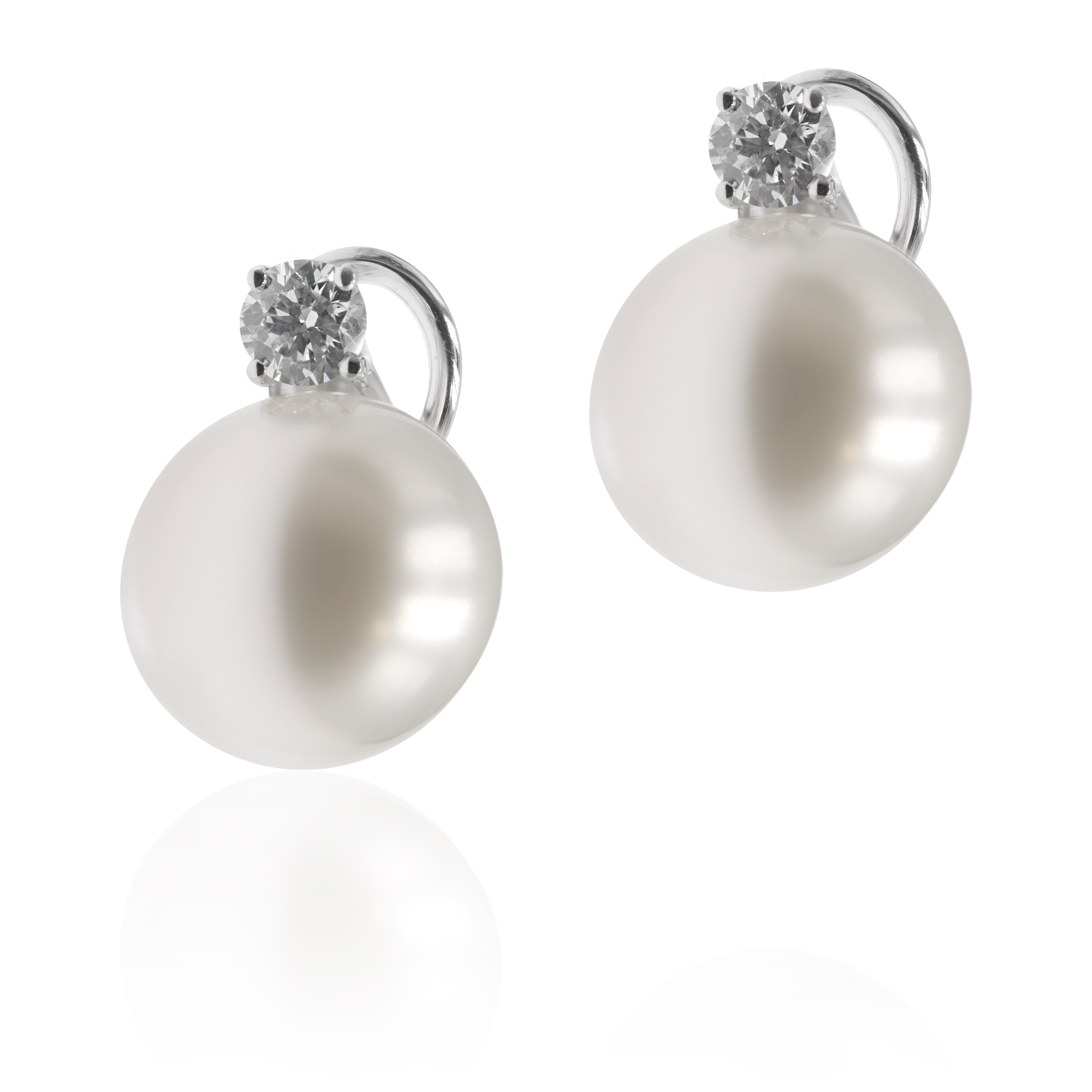 Orecchini in oro bianco ct.18 con diamanti taglio brillante ( ct. 0,60 ) e perle Australiane( mm 12,80 )