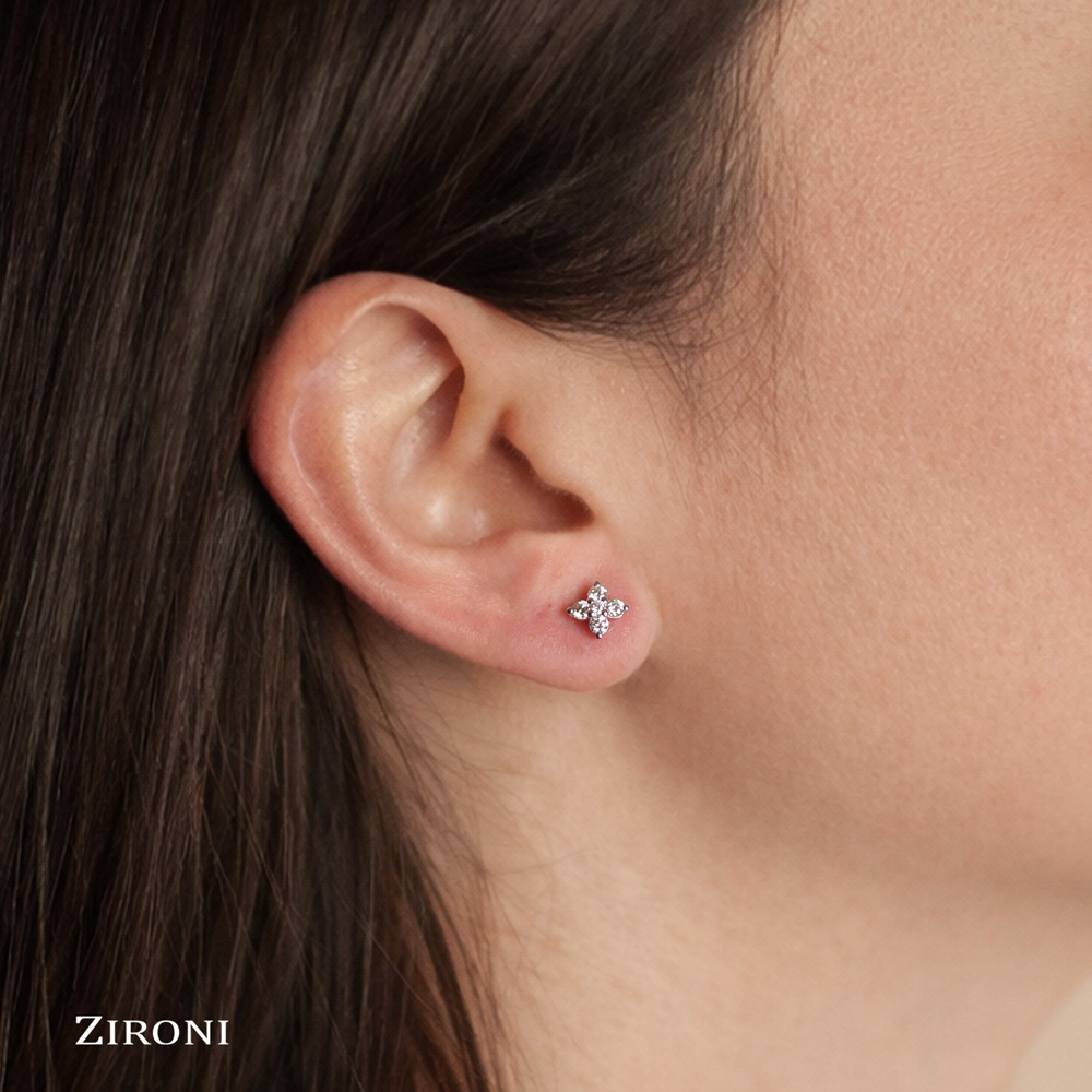 Orecchini in oro bianco 18K e fiore con 10 diamanti taglio brillante (0,40 ct - G - SI)