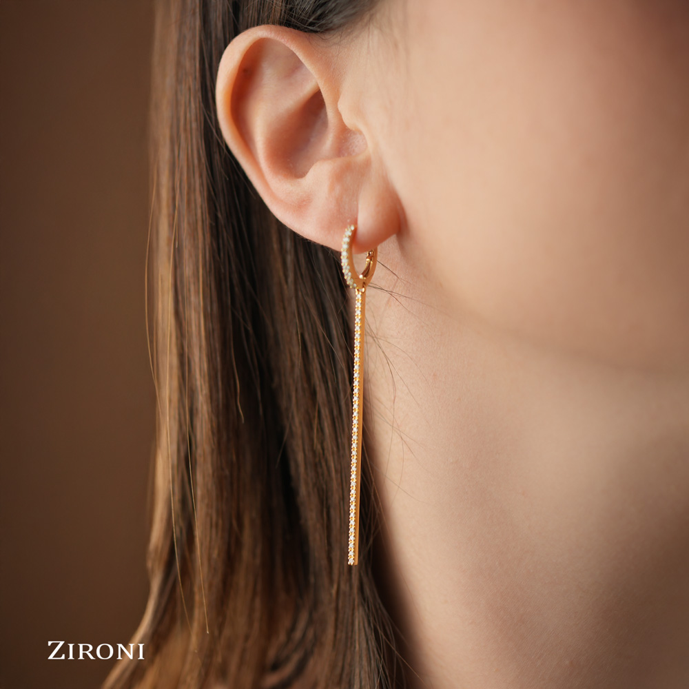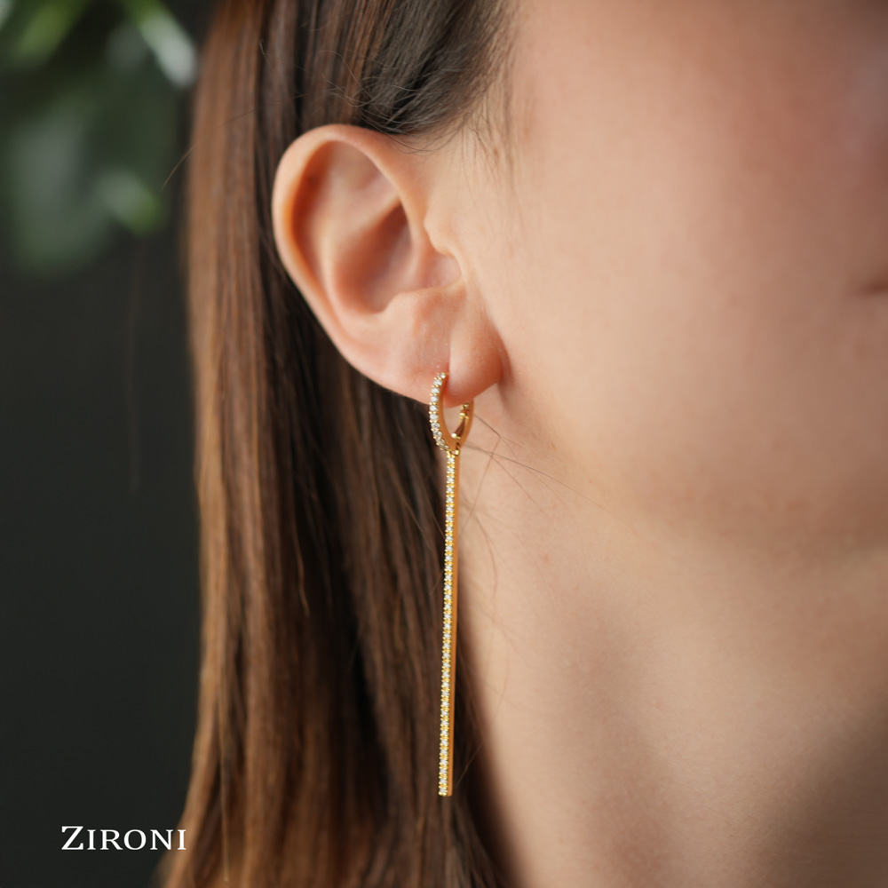 Orecchini ad anella in oro giallo 18K con barretta pendente rigida con diamanti taglio brillante (0,71 ct - G - SI) - lunghezza 7 cm
