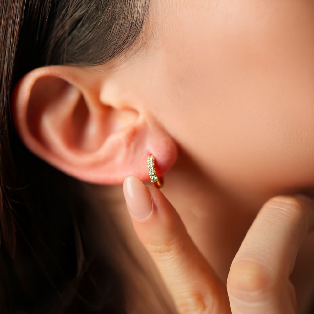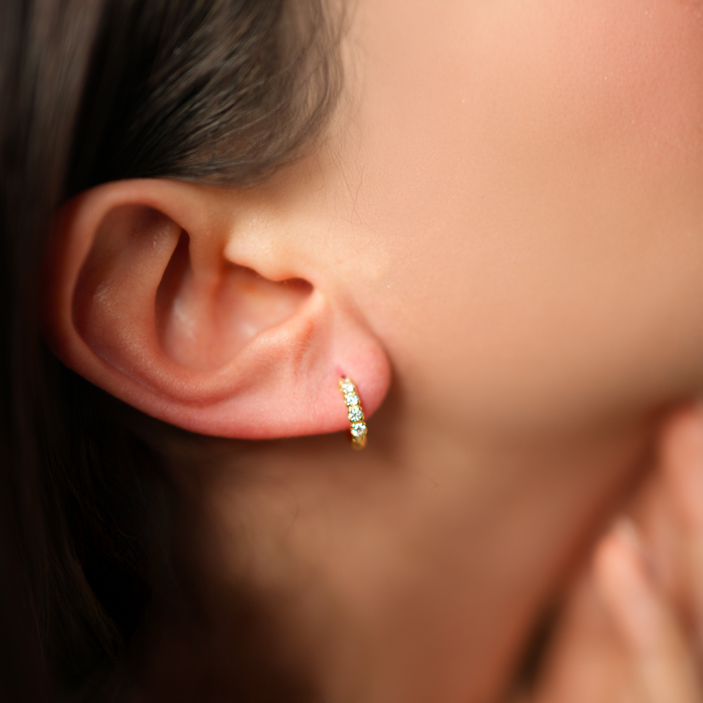 Orecchini ad anella in oro giallo 18K con diamnti taglio brillante (ct 0,34 - G - SI)