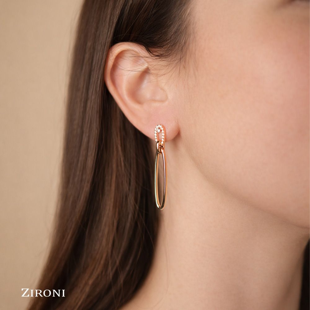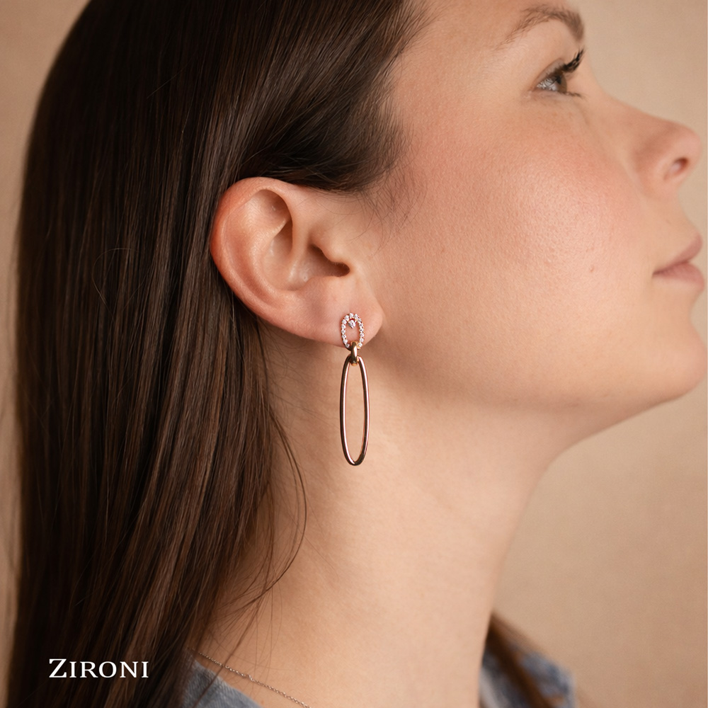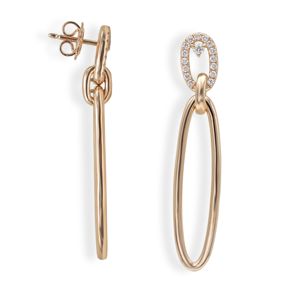 Orecchini in oro rosa 18K con ovali pendenti e 32 diamanti taglio brillante (0,32 ct - F - SI)