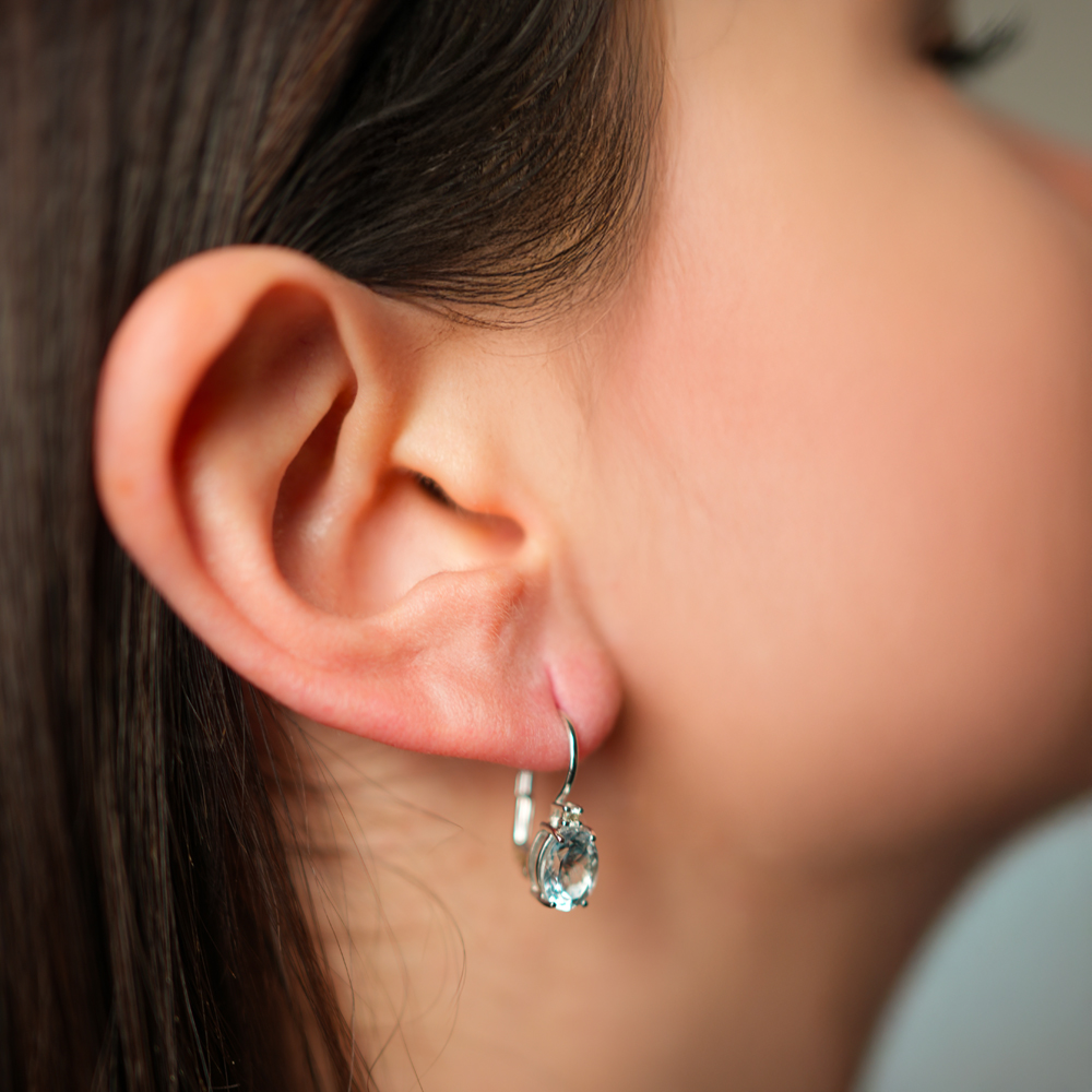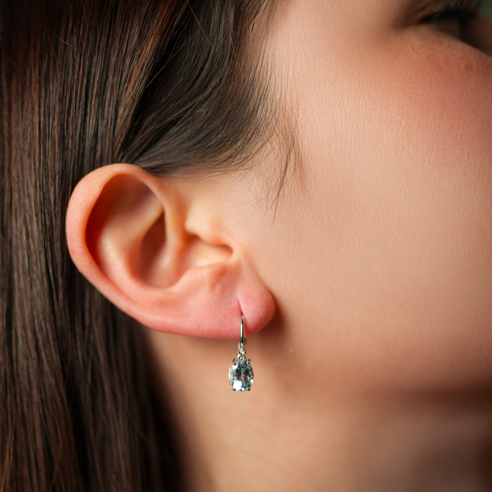 Orecchini ion oro bianco con acquamarina e diamanti
