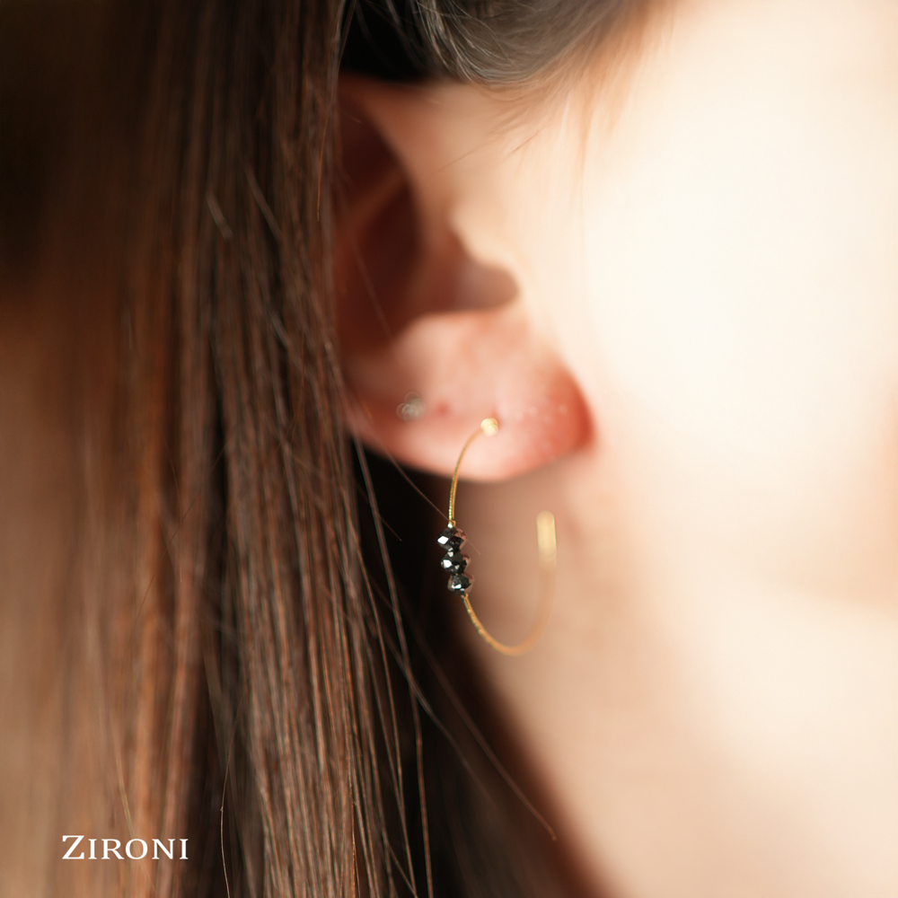 Orecchini "Nara" con diamanti neri taglio briolette - ø2,5 cm