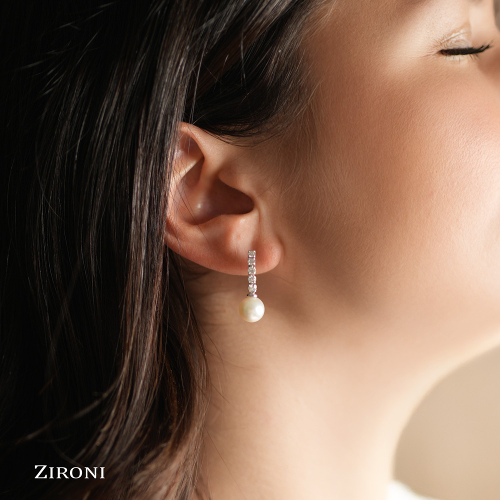 Orecchini pendenti in oro bianco 18K con perle akoya (mm 7,5) e diamanti taglio brillante (ct 0,30-G-VS)