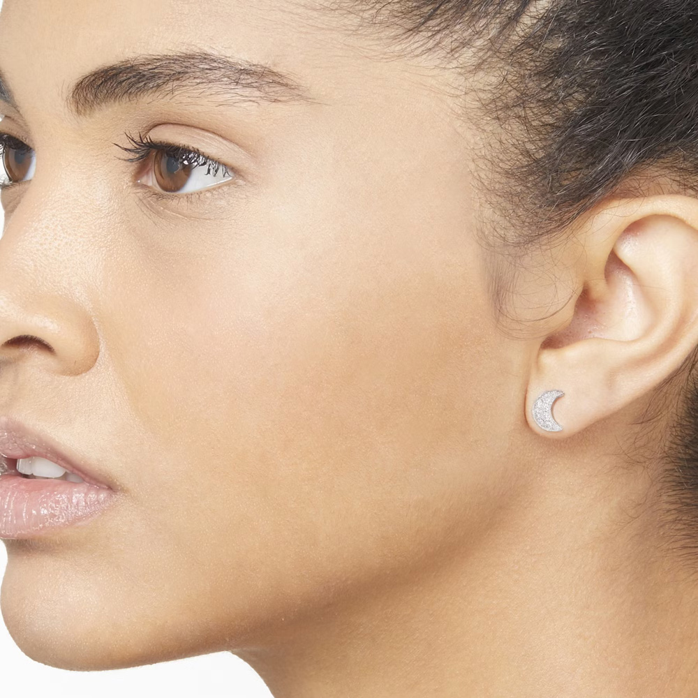 Orecchino luna in oro bianco rodiato con diamanti (ct 0.15) - modello piccolo