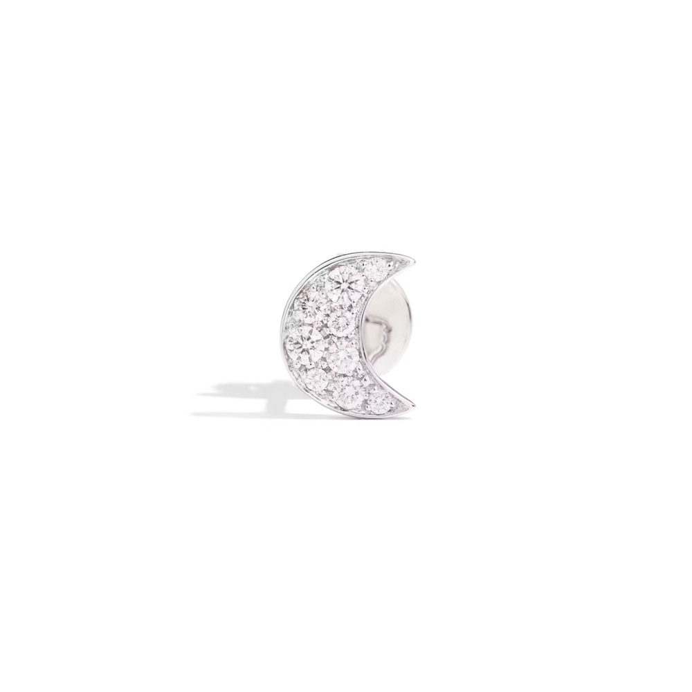 Orecchino luna in oro bianco 18K rodiato con 9 diamanti bianchi (ct 0.15) - modello piccolo - mezzo paio