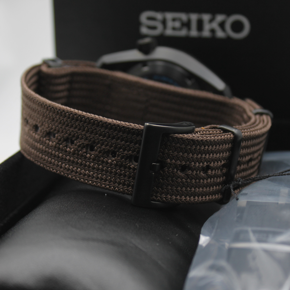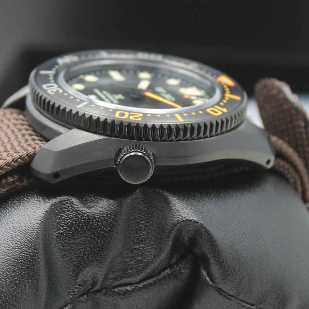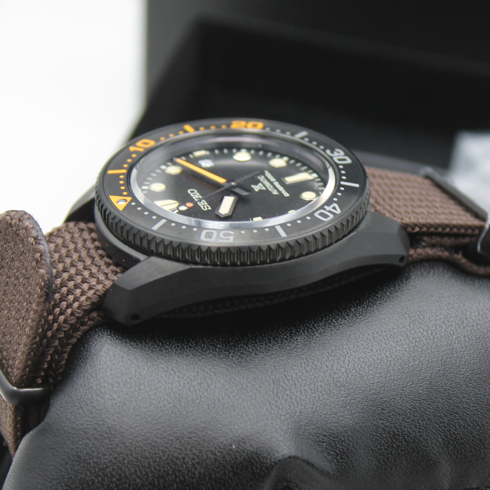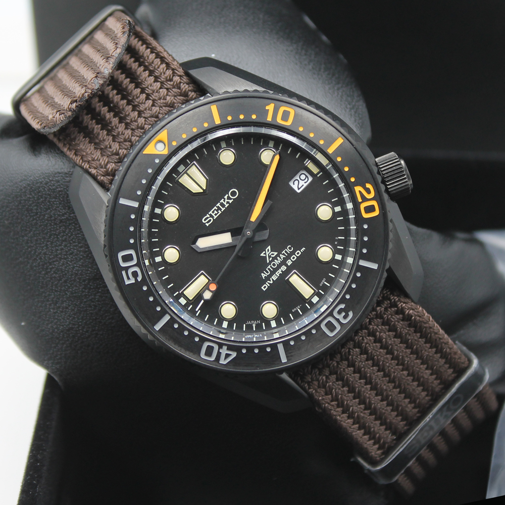 Questa moderna reinterpretazione dell'orologio subacqueo del 1968 è dotata del calibro 6R35, che offre una riserva di carica di 70 ore. Il suo quadrante e la lunetta sono punteggiati da dettagli arancioni che ricordano i riflessi della luce che brilla sotto il mare di notte. Gli indici e le lancette sono rivestiti di Lumibrite per garantire una leggibilità ottimale anche nelle condizioni di minor visibilità. L'orologio è dotato di un cinturino in tessuto che incorpora una tecnica di tessitura tradizionale giapponese chiamata Seichu. Inoltre, è offerto con un cinturino aggiuntivo in silicone nero perfetto da abbinare a tanti outfit diversi e indossare in molteplici contesti diversi tra loro.