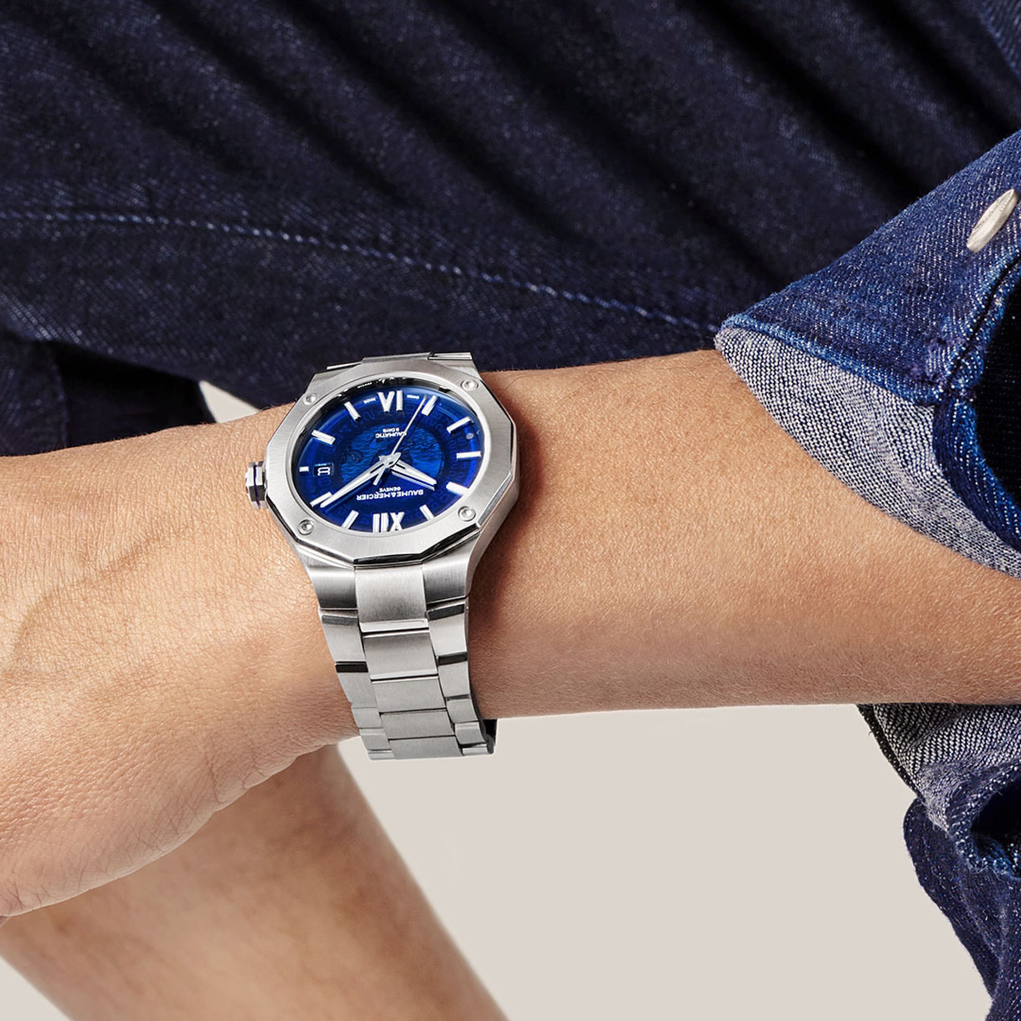 Creato nel 1973, l’orologio Riviera torna quest’anno per far rivivere lo spirito di un’epoca illustre dell’orologeria. Eccolo nel 2021, rivisitato ma con la stessa autenticità: cassa in acciaio dalle dimensioni equilibrate, lunetta dodecagonale dotata di quattro viti o diamanti, movimento automatico o al quarzo “Swiss Made”, e bracciale integrato intercambiabile in acciaio o cinturino in caucciù. Il design originale è tuttora presente, così come il desiderio di abbracciare la contemporaneità.