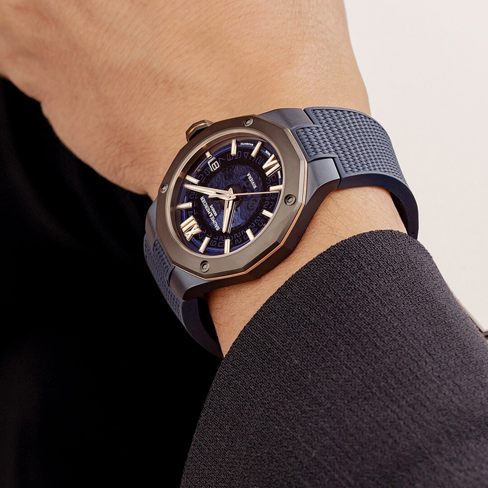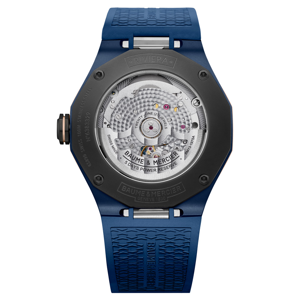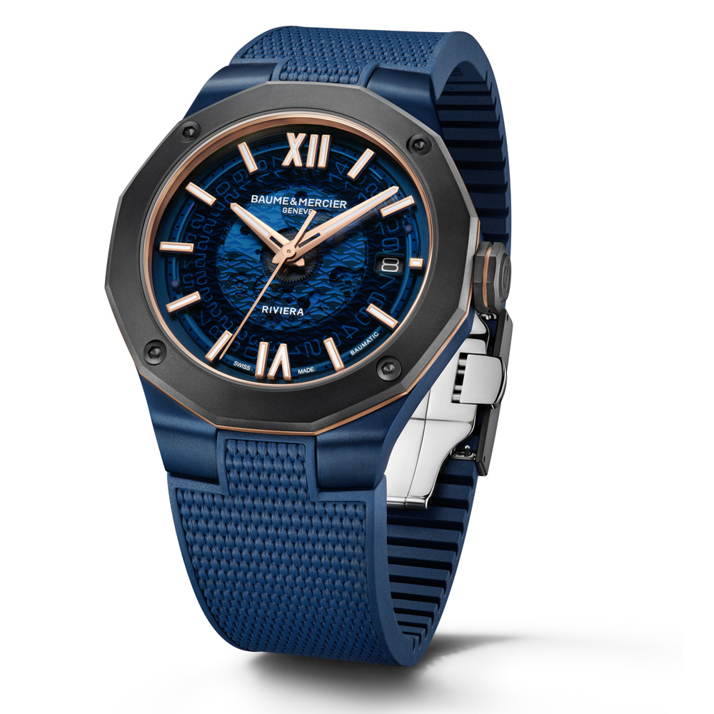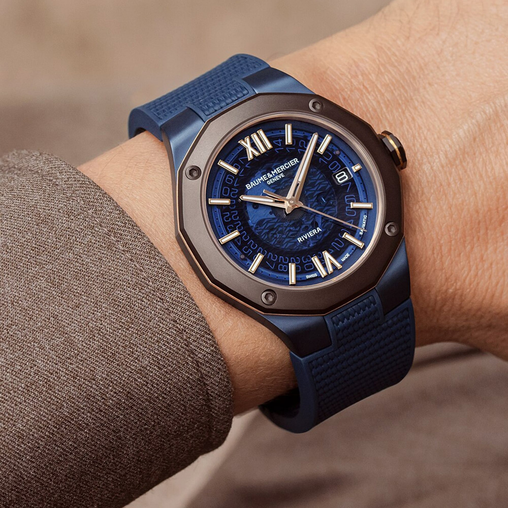 Il Riviera Baumatic 10769 riflette la mineralità della Riviera francese grazie alla cassa in acciaio associata alla lunetta in titanio microsabbiato. Questo segnatempo da 42 mm racchiude un movimento Baumatic di Manifattura, garanzia di precisione e durabilità, abbinato a un quadrante blu in vetro zaffiro e a un cinturino in caucciù blu intercambiabile con pattern tela.