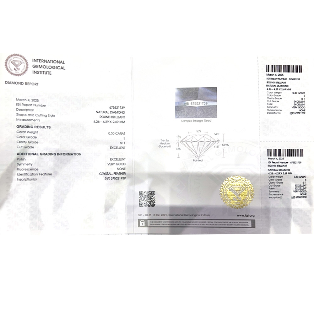 Solitario in oro bianco con diamante certificato IGI taglio brillante (ct0.30 E Si1)