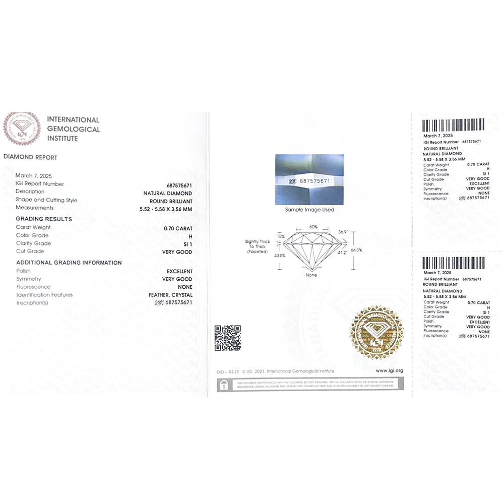 Solitario in oro bianco 18K con diamante taglio brillante certificato IGI