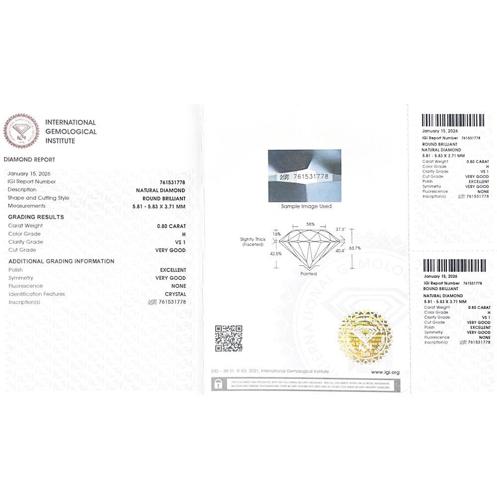 Solitario in oro bianco 18K con diamante taglio brillante certificato IGI