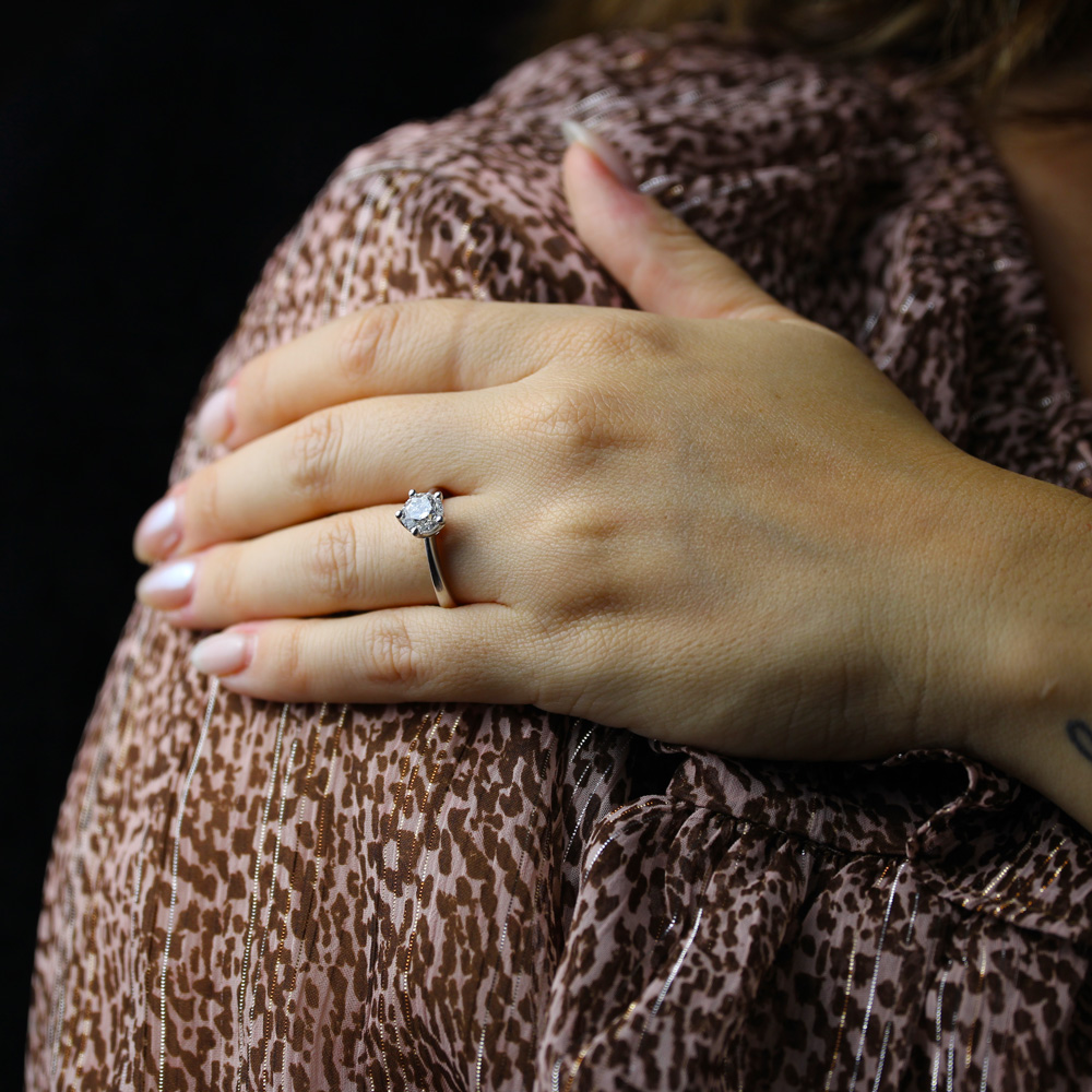 Anello di fidanzamento solitario in oro bianco 18K con diamante taglio brillante certificato IGI