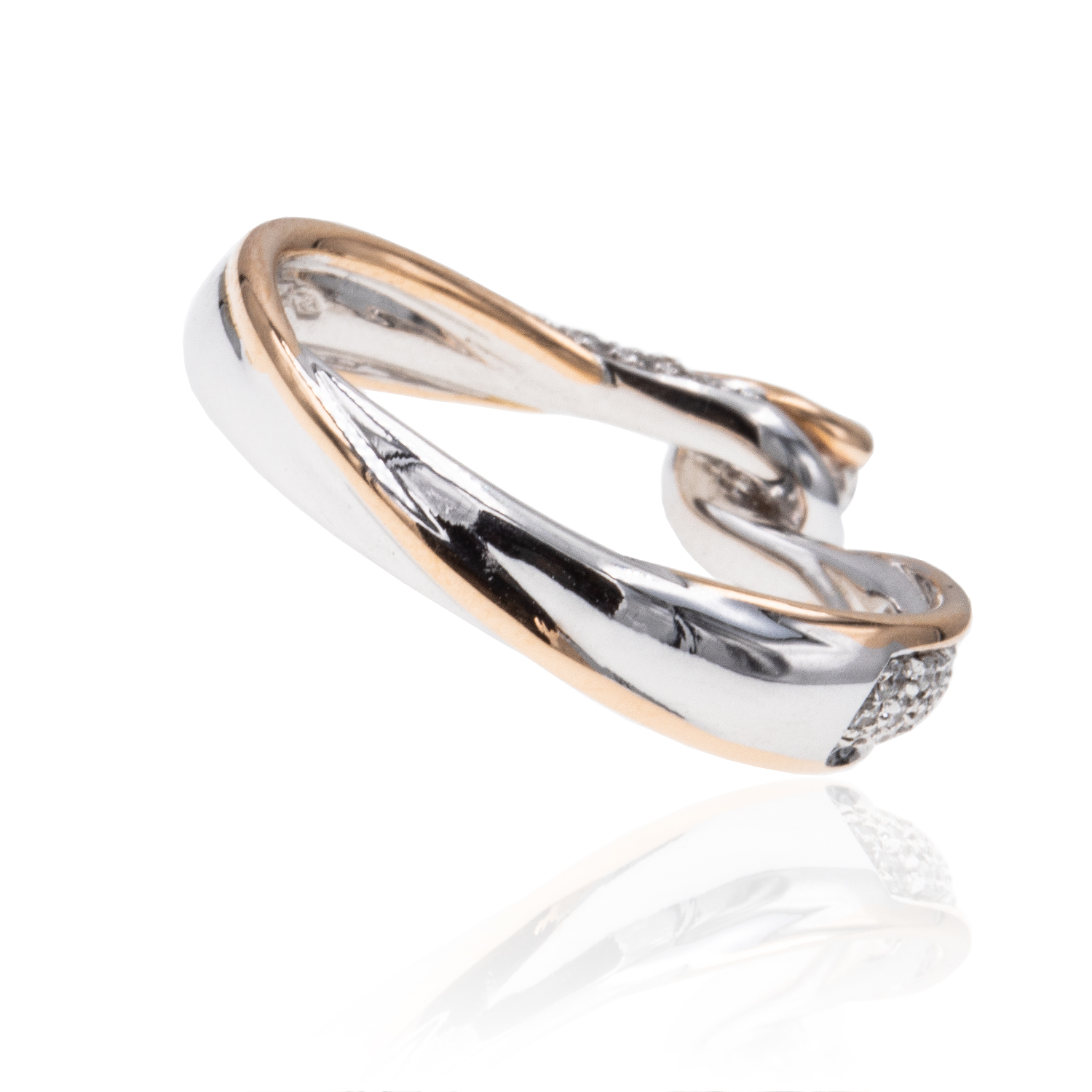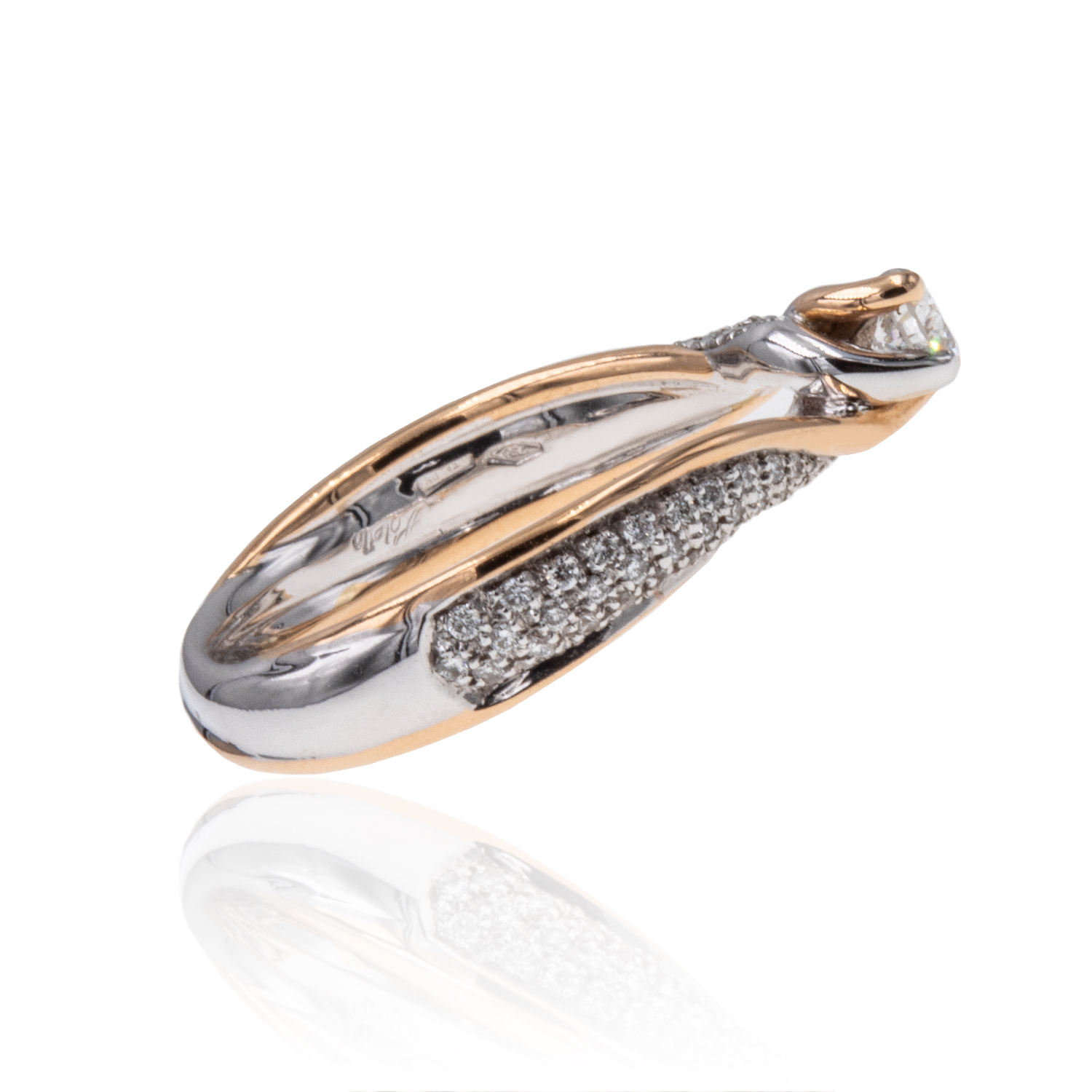 Solitario in oro bianco e oro rosa con diamante taglio brillante (ct 0,22 - G-VS)