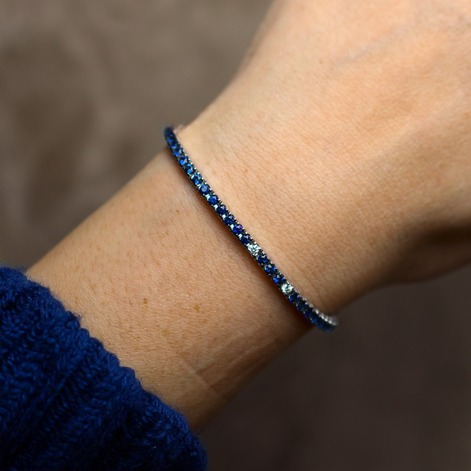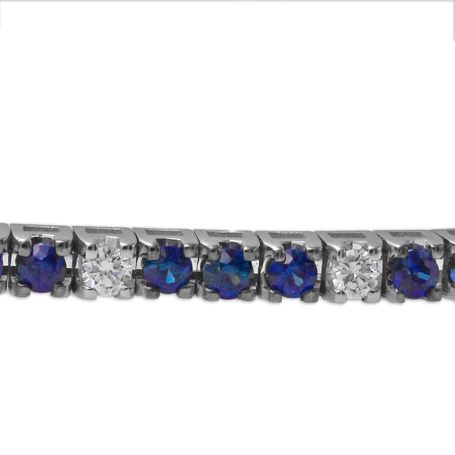 Tennis in oro bianco 18K con diamanti taglio brillante (ct 0,20 - G - VS) e zaffiri taglio brillante (ct 2,75)