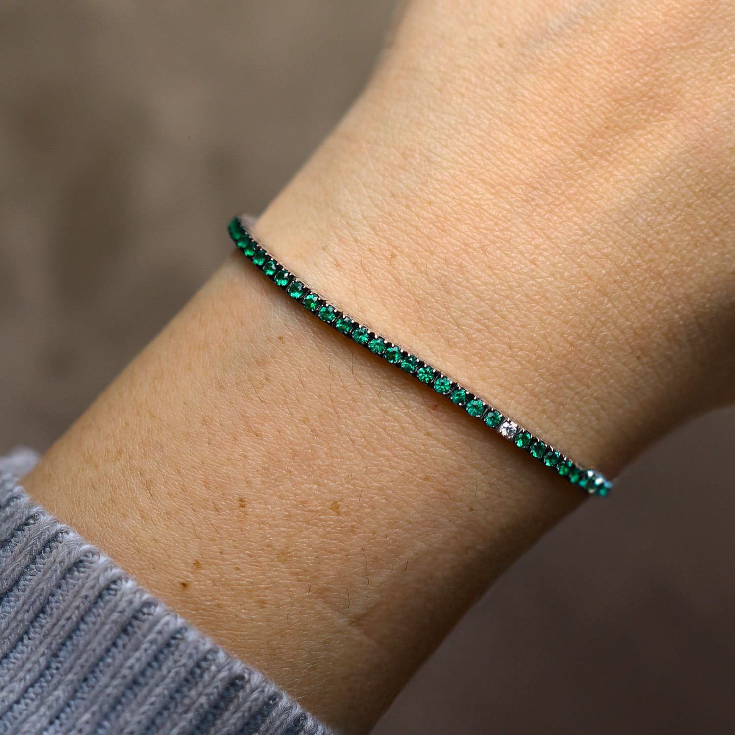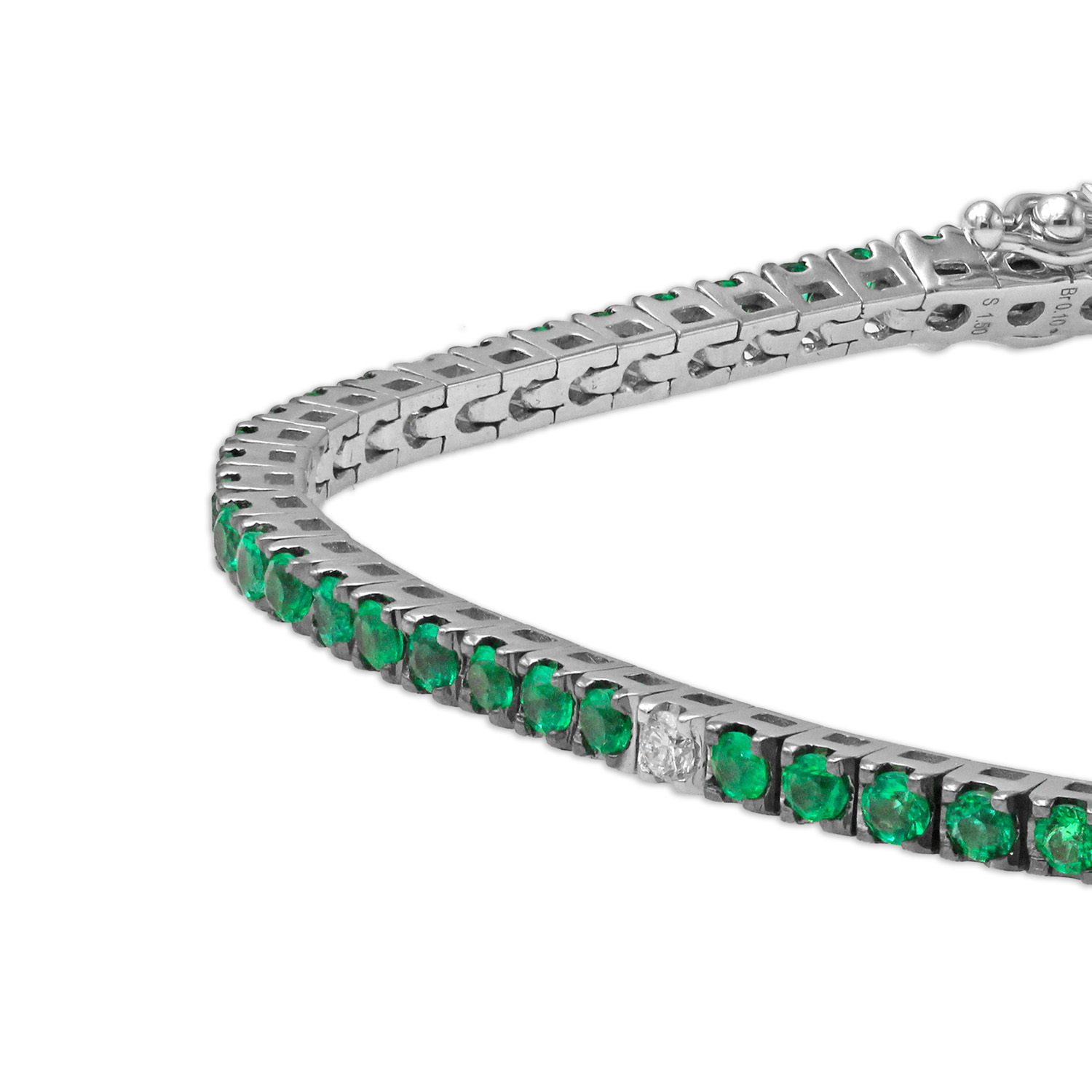 Tennis in oro bianco con diamanti (ct 0,10) e smeraldi (ct 1,50)