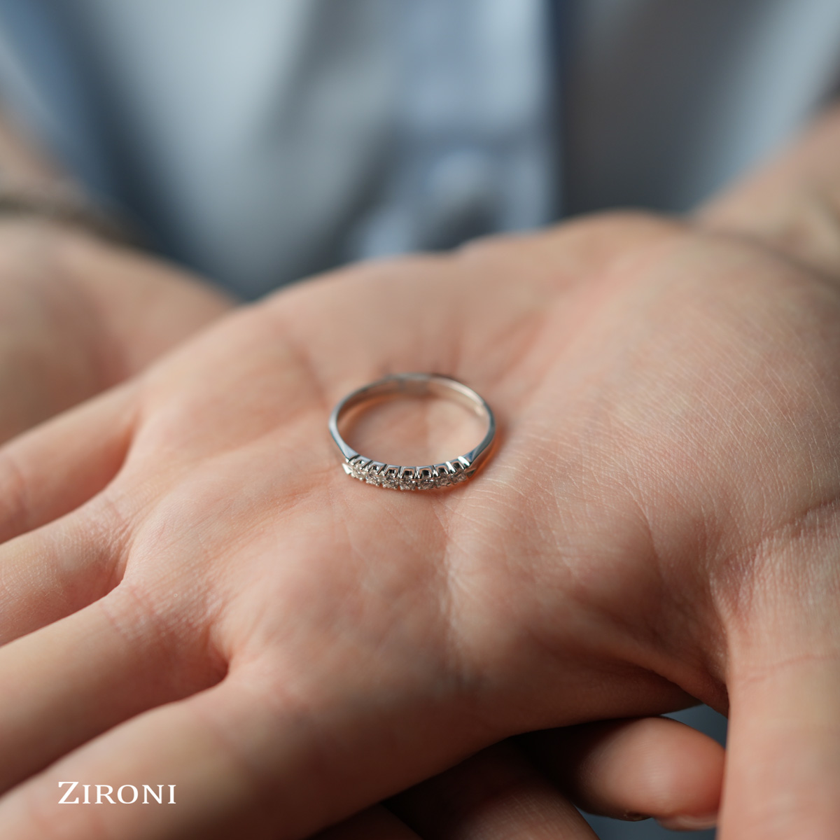 Veretta in oro bianco 18K con 7 diamanti taglio brillante (0,15 ct - F - VS)