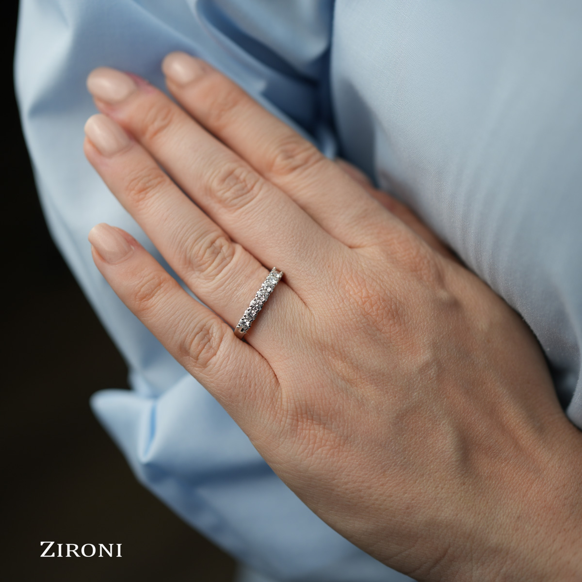 Veretta in oro bianco 18K con 9 diamanti taglio brillante (ct 0,55 - F- VS)