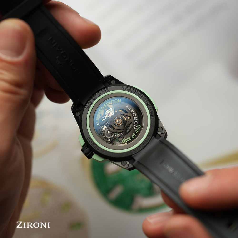 Il Wild ONE 39mm, realizzato con il nostro esclusivo carbonio NORTEQ®, ultraleggero e ultraresistente, è l’orologio sportivo ad alte prestazioni per eccellenza. Animato da un movimento scheletrato automatico meccanico, svela la maestria artigianale e l’ingegneria di precisione che ne stanno al cuore. Questo orologio è prodotto in edizione limitata a sole 400 pezzi.